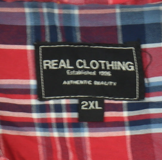 This Real Clothing men's red plaid button-up shirt in size 2XL combines effortless style with everyday comfort, making it a classic addition to any wardrobe. Crafted from 100% cotton, this woven shirt offers a breathable and lightweight feel, ideal for wearing throughout the year. The soft cotton fabric sits comfortably against the skin, while the plaid pattern blends shades of red, blue, and white for a timeless casual look that never goes out of fashion. Designed with long sleeves and a button-down collar, this shirt provides a smart-casual aesthetic suitable for both laid-back afternoons and informal workdays. The front button closure adds versatility, allowing it to be worn open over a T-shirt or buttoned up for a polished finish. The breathable nature of the cotton ensures maximum comfort, whether worn layered during cooler months or solo in warmer weather.The regular fit ensures a comfortable silhouette without being too tight or too loose, complementing various body shapes. Its lightweight feel makes it perfect for those seeking a shirt that transitions well across seasons—ideal for spring and summer outings or layered under jackets in autumn. The machine-washable design ensures easy care and long-lasting wear.Whether you’re looking to refresh your casualwear collection or need a reliable weekend go-to, this Real Clothing button-up delivers timeless style, quality fabric, and versatile practicality. Pair it effortlessly with jeans or chinos and casual footwear for an easy-going yet put-together look. Lightly used and in very good condition, this piece retains its structure and vibrancy, promising comfort and dependable wear.Bring a laid-back touch to your everyday style with this Real Clothing men’s plaid shirt—an essential that balances heritage-inspired design with modern usability. Its eye-catching red plaid design ensures you’ll stand out for all the right reasons while enjoying the comfort and reliability expected from genuine quality craftsmanship.