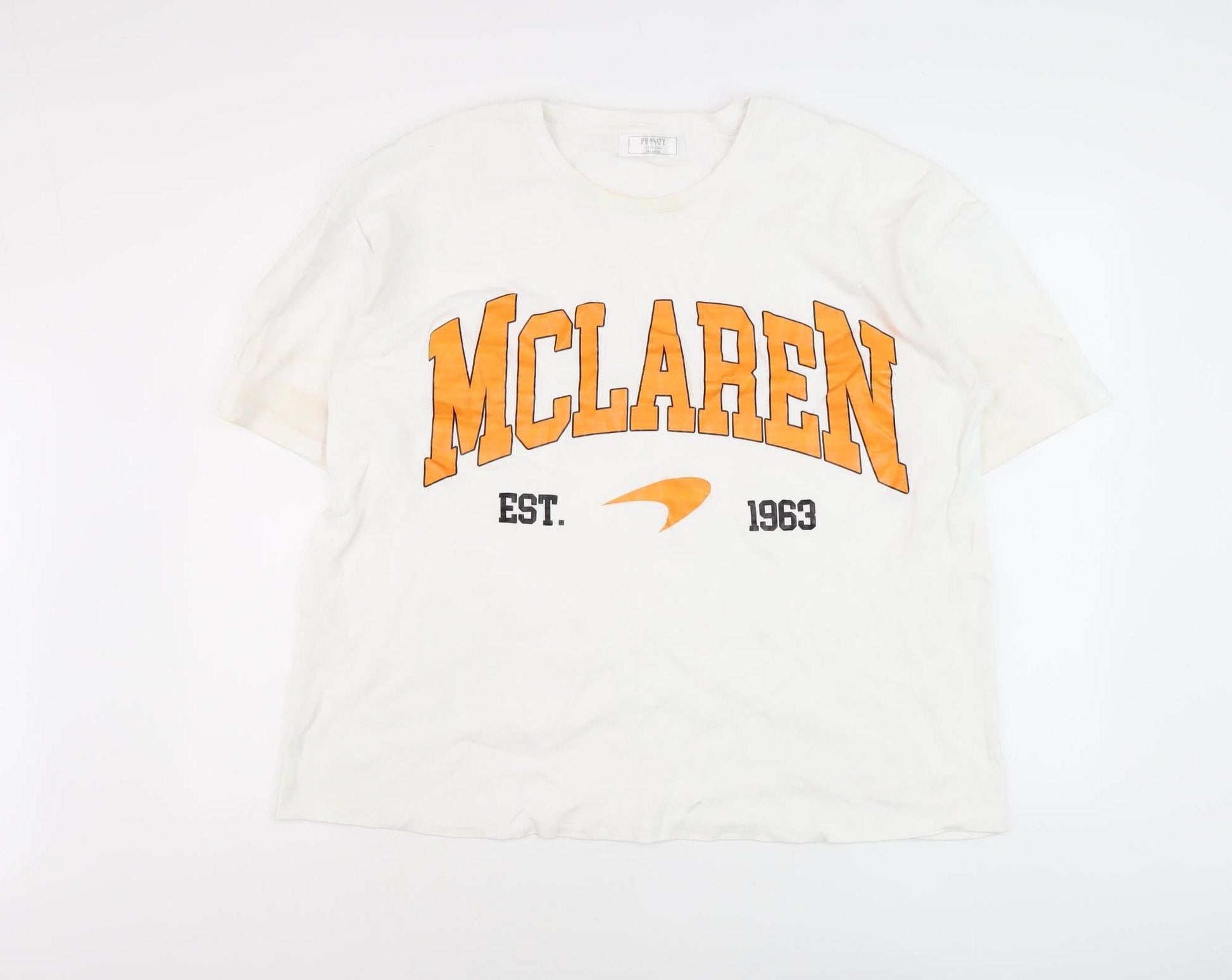 Embrace your love for motorsports with this stylish Reality Racing Men's T-Shirt. Crafted for comfort and style, this 2XL shirt features a soft, durable cotton jersey fabric that is perfect for everyday wear. The crisp white colour is complemented by a bold, graphic print showcasing the McLaren logo, ideal for any car enthusiast. Featuring short sleeves and a classic crew neck, this T-shirt is designed for a regular fit, making it suitable for all seasons. The machine washable material ensures easy garment care, while the slightly worn condition adds a touch of vintage charm to your wardrobe. With its logo accent and graphic theme, this tee is perfect for casual outings or showing off team spirit at racing events. Whether paired with jeans or shorts, this versatile piece is a must-have for those who appreciate quality and style. Don't miss out on adding this unique item to your collection.