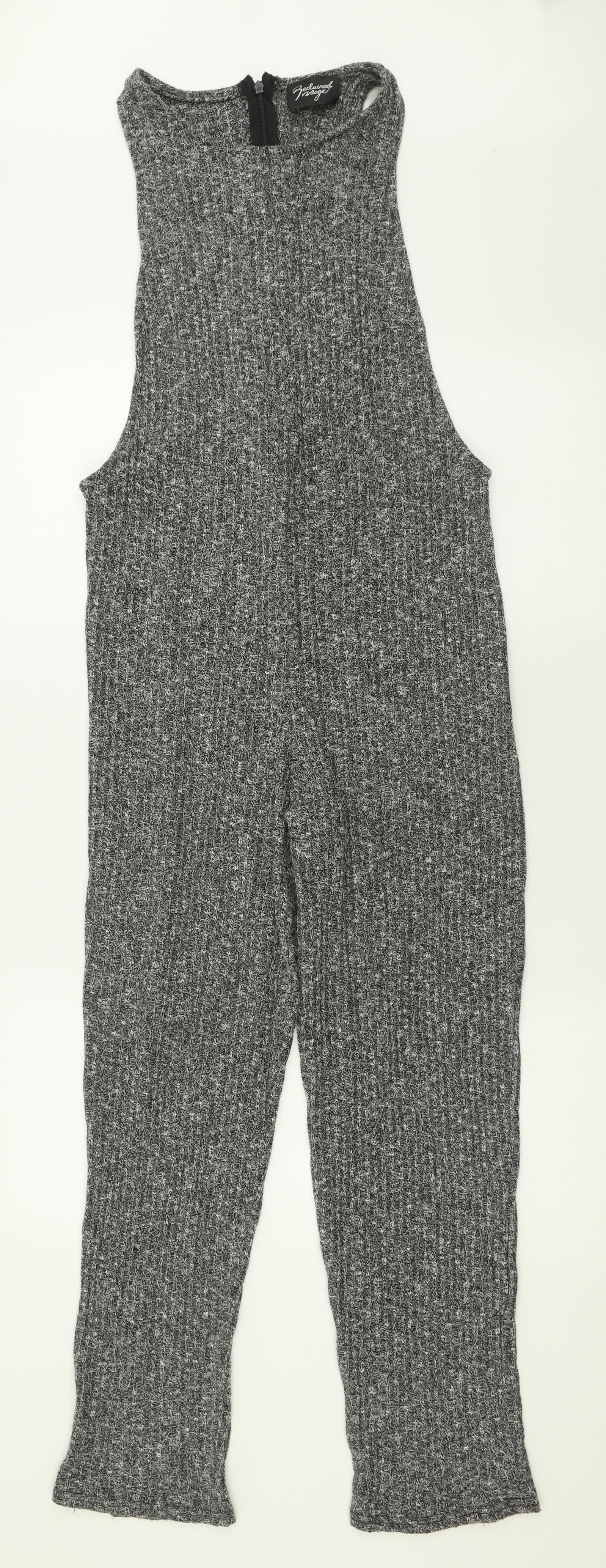 Womens Grey Polyester Jumpsuit One-Piece Size 8 Zip