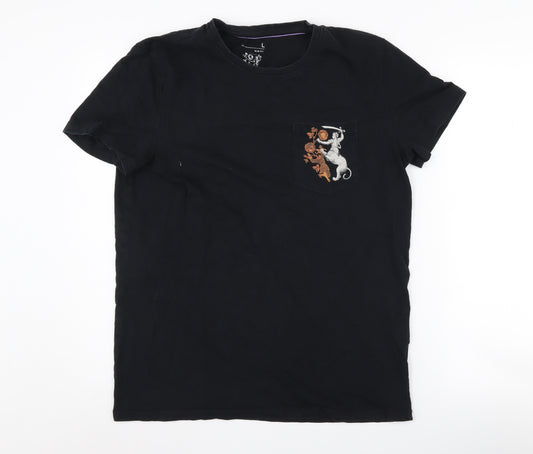 Drama Call Men's Black Graphic Print T-Shirt Size L