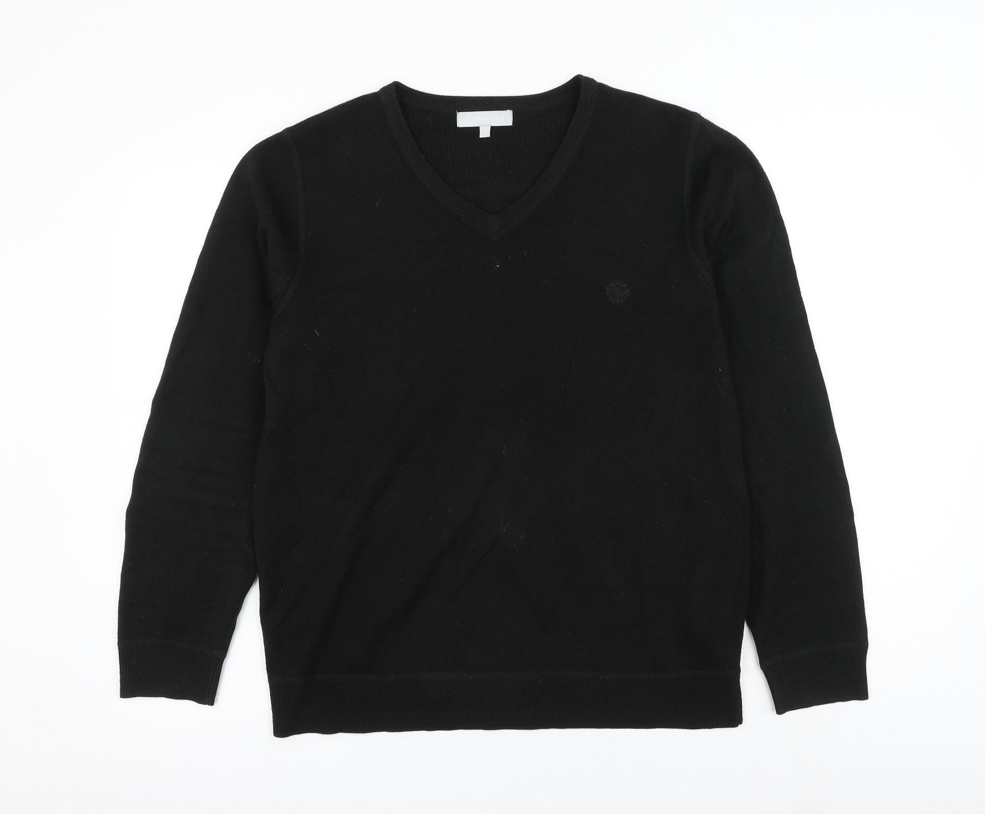 Mens Black V-Neck Acrylic Pullover Jumper Size M
