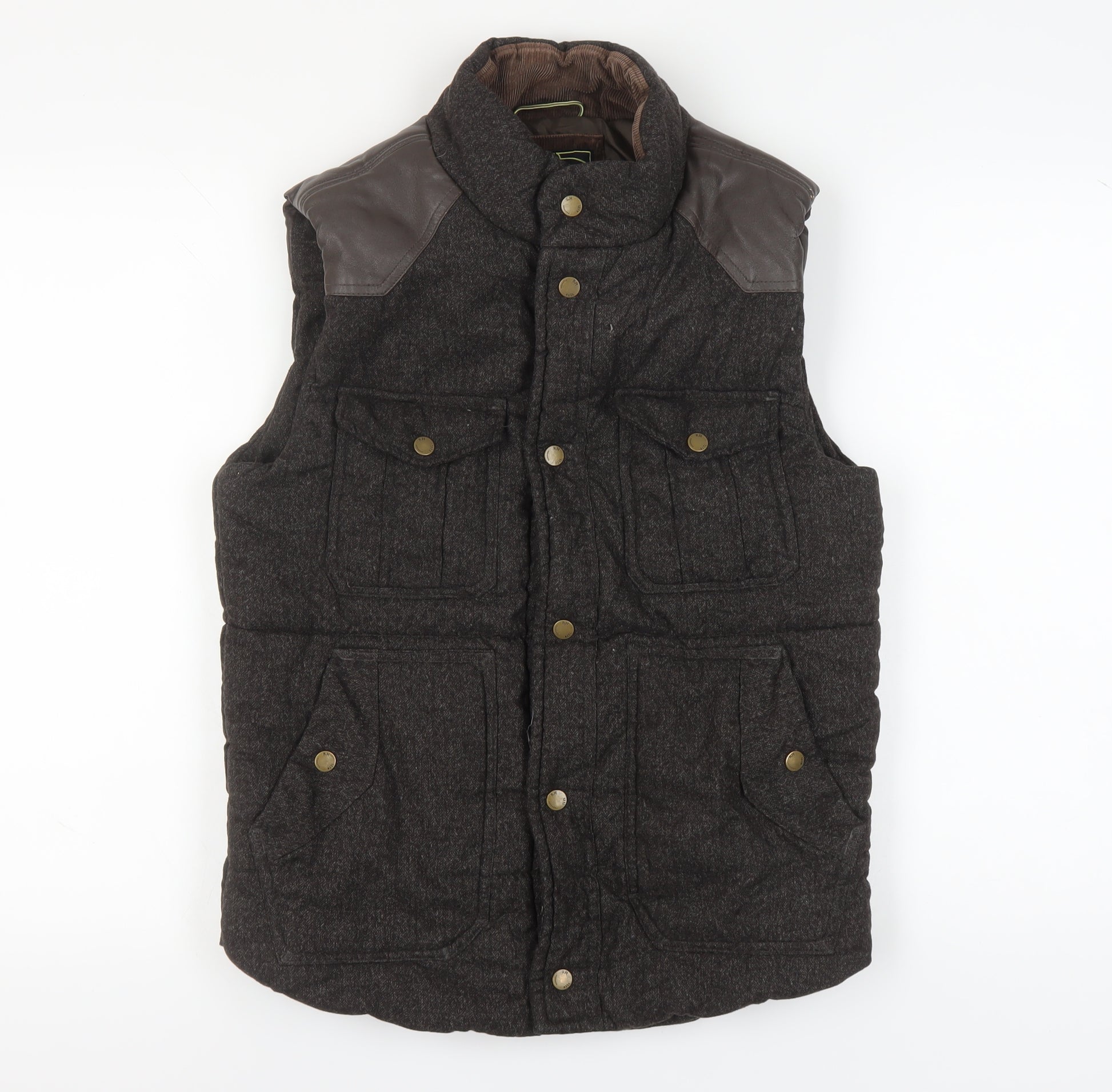 Elevate your outdoor wardrobe with this stylish Red Herring Men's Waistcoat, perfect for the colder seasons. Tailored in a casual fit, this brown waistcoat embodies both style and functionality, making it an ideal choice for any outdoor or hiking activity. Crafted from a mix of high-quality materials including nylon and polyester with a touch of viscose, this waistcoat ensures durability and comfort. The padded design, with its polyester insulation, offers excellent warmth during the autumn and winter months. Featuring a stand-up collar for added neck warmth and protection, this waistcoat is not only practical but also sleek and modern in appearance. The piece includes button closure accents and multiple zipped pockets, providing ease and utility. With a lining of polyester, it promises superb comfort and coziness. Moreover, the entire garment is machine washable, allowing for hassle-free cleaning. Whether you're exploring the great outdoors or enjoying a casual day out, this versatile waistcoat is a perfect fit. In excellent condition with no visible flaws or damages, this waistcoat is priced attractively, offering great value without compromising on style or quality. Make it yours today and stay ahead of the fashion curve.