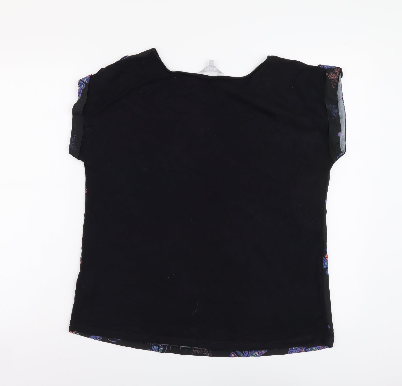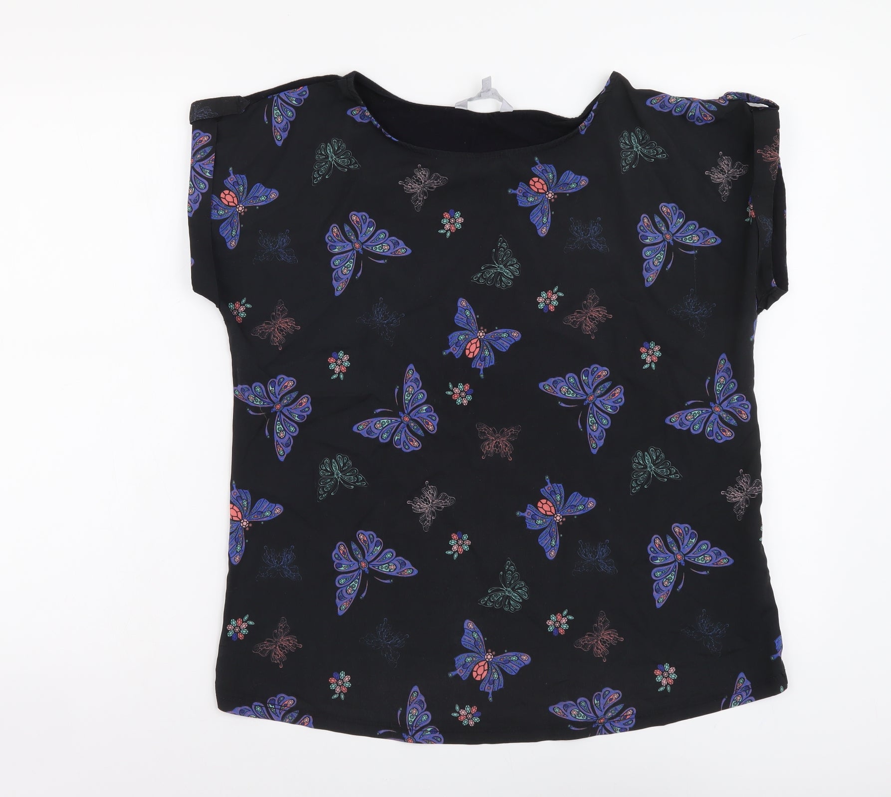 Womens Black Geometric Polyester Basic T-Shirt Size 14 Round Neck - Butterfly
