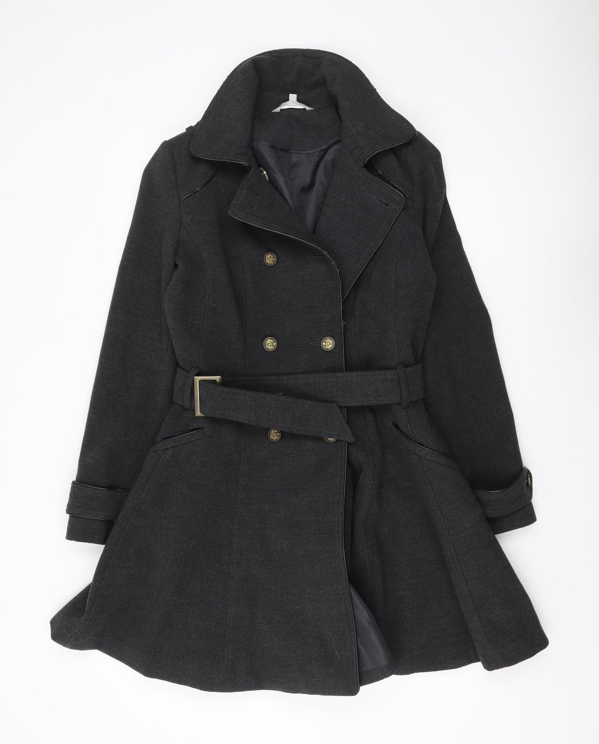 Step out in style with this elegant Red Herring Women's Black Long Trench Coat. Designed for those who appreciate timeless elegance and functionality, this coat is perfect for both formal and casual occasions. Crafted from a luxurious blend of polyester, viscose, and elastane, the coat offers a comfortable and stylish fit. Its classic double-breasted style, paired with a chic belted waist, underscores its contemporary appeal while providing a flattering fit for any body type. The coat features button accents that add a touch of sophistication, while the belt adds a slimming silhouette. Its durable polyester lining ensures that you remain warm and comfortable throughout the colder months, making it an ideal choice for autumn and winter wear. The long length provides an extra layer of warmth, ensuring you are well-protected against the elements. With its regular fit, this coat accommodates layering, so you can comfortably wear it over your favourite outfits. A versatile addition to any wardrobe, this trench coat effortlessly complements both formal dresses and casual jeans and boots. Invest in this Red Herring coat and experience a perfect blend of fashion and functionality.