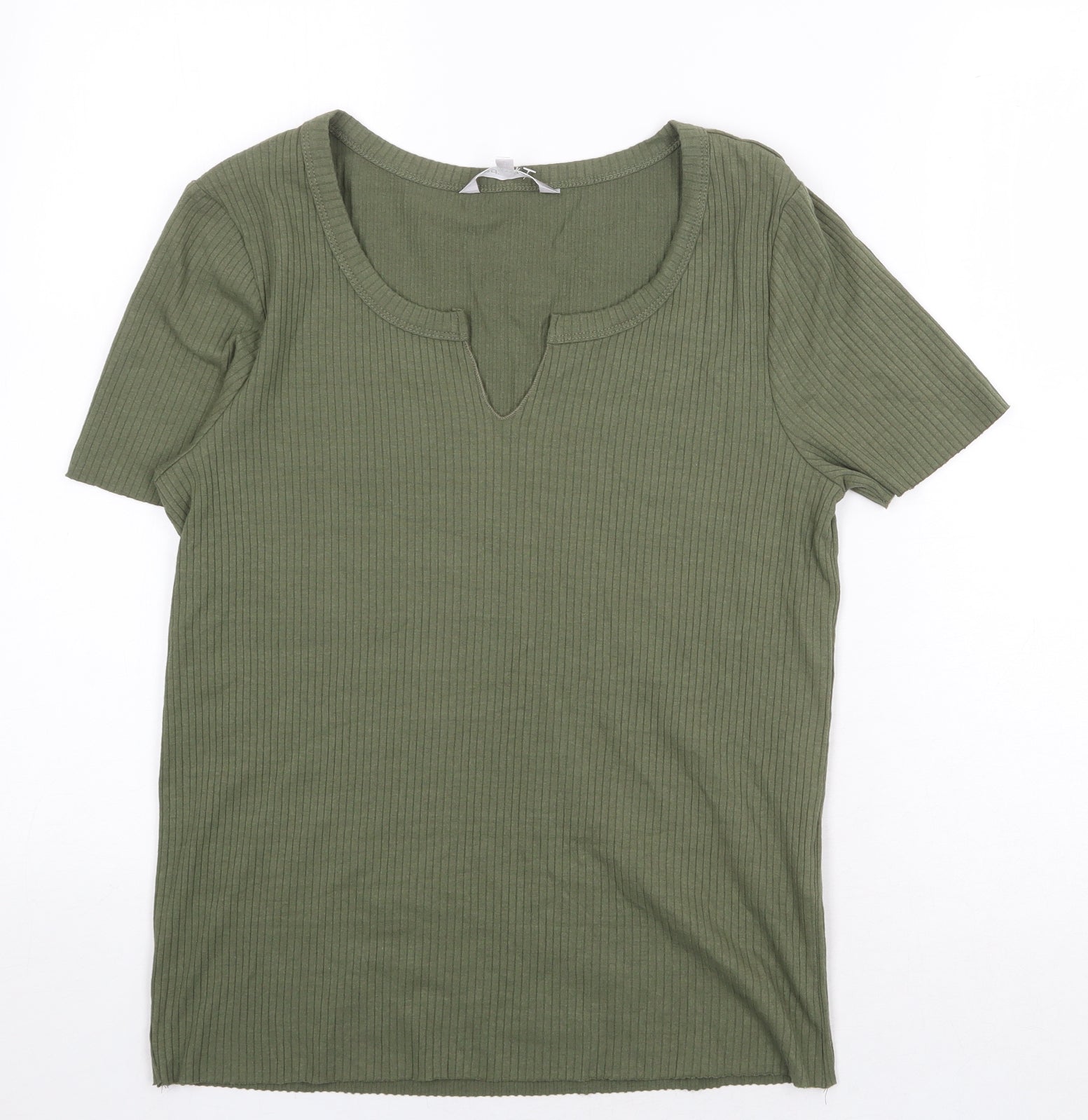 Womens Green Cotton Basic T-Shirt Size 14 V-Neck - Ribbed