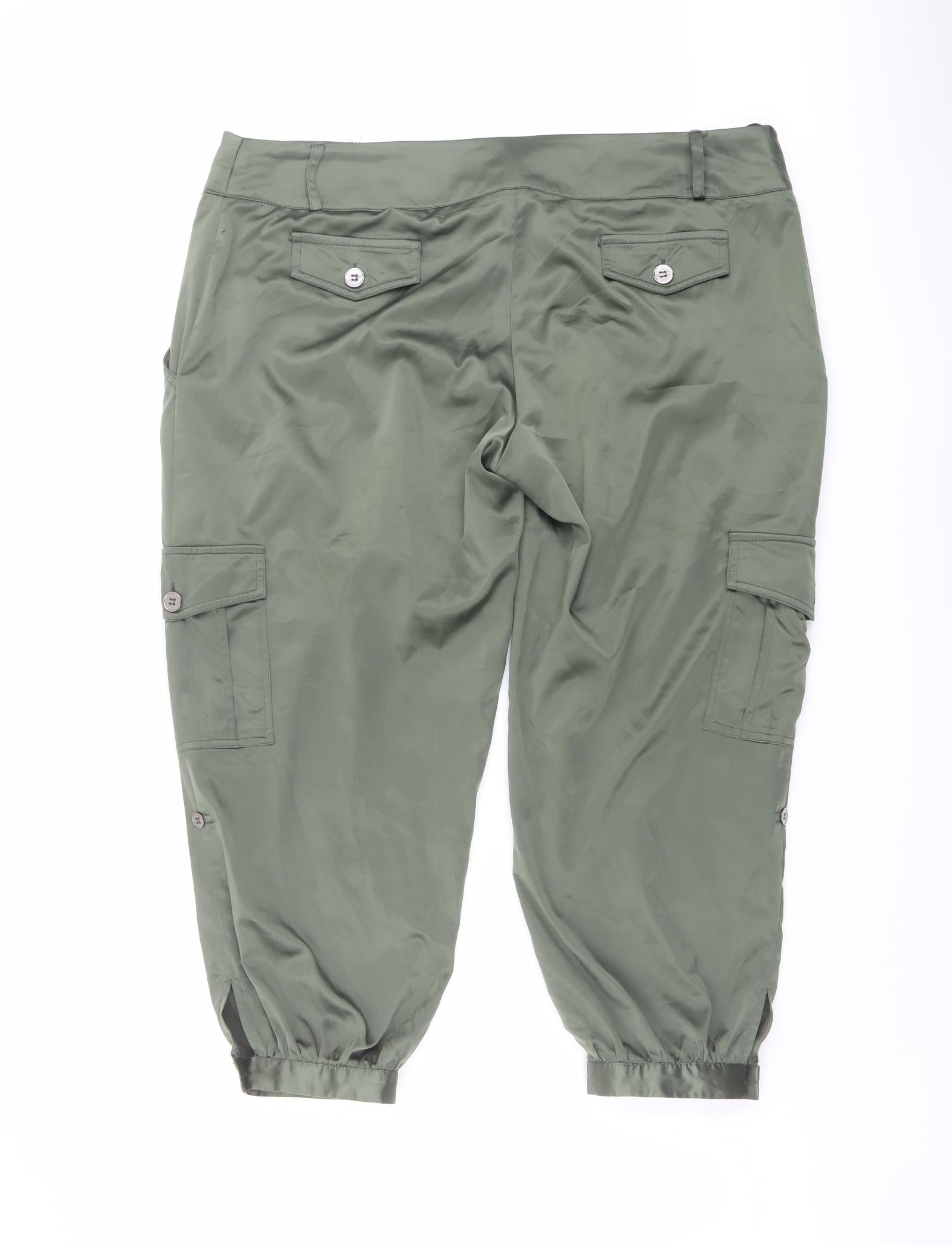 Womens Green Polyester Cropped Trousers Size 16 L24 in Regular Button - Cargo