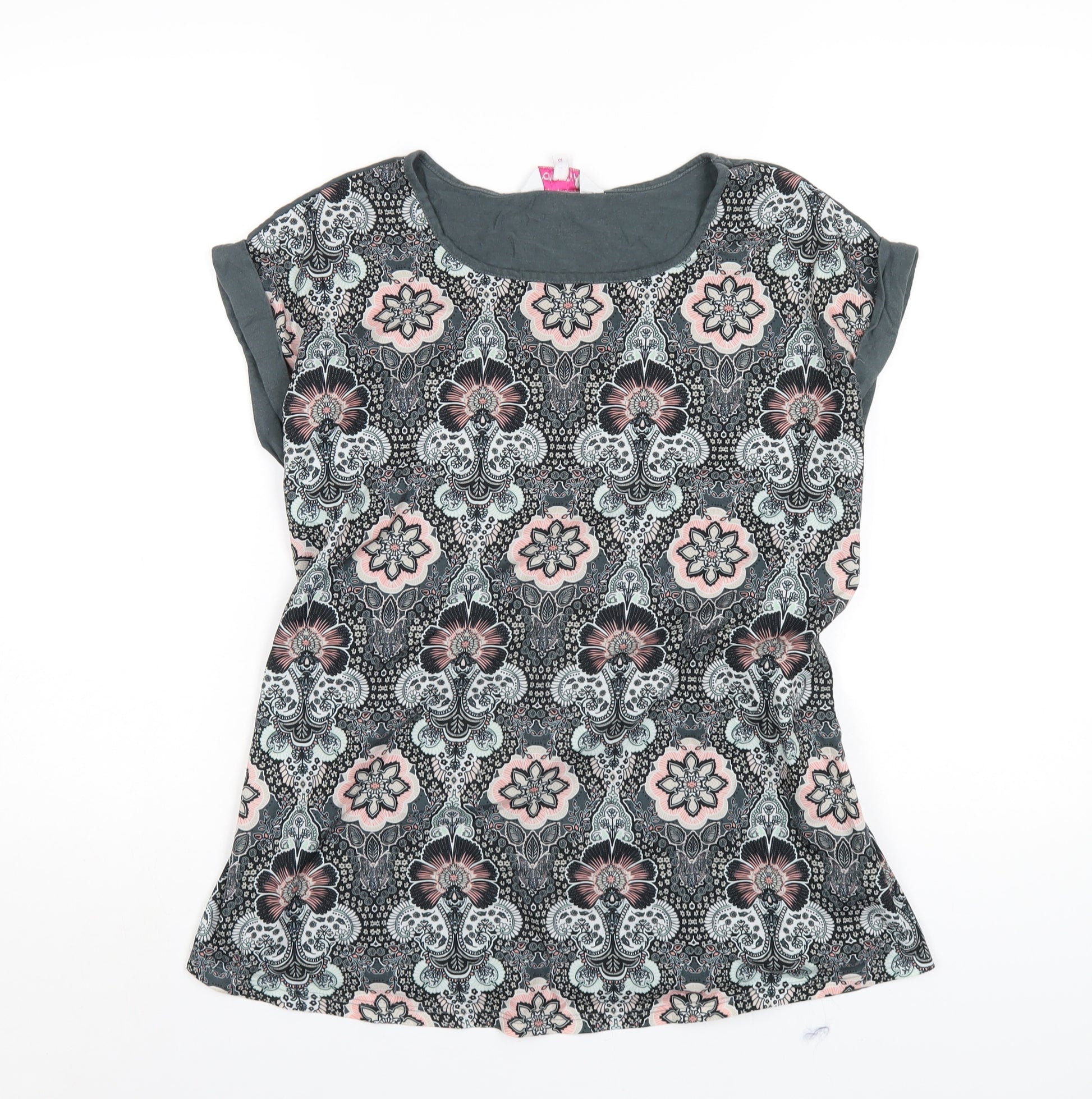 Womens Grey Geometric Polyester Basic T-Shirt Size 12 Round Neck