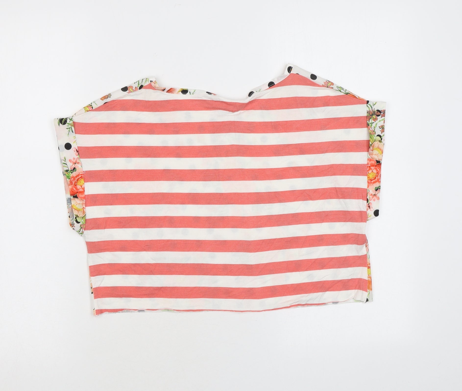Womens Multicoloured Polka Dot Polyester Cropped T-Shirt Size 12 Round Neck
