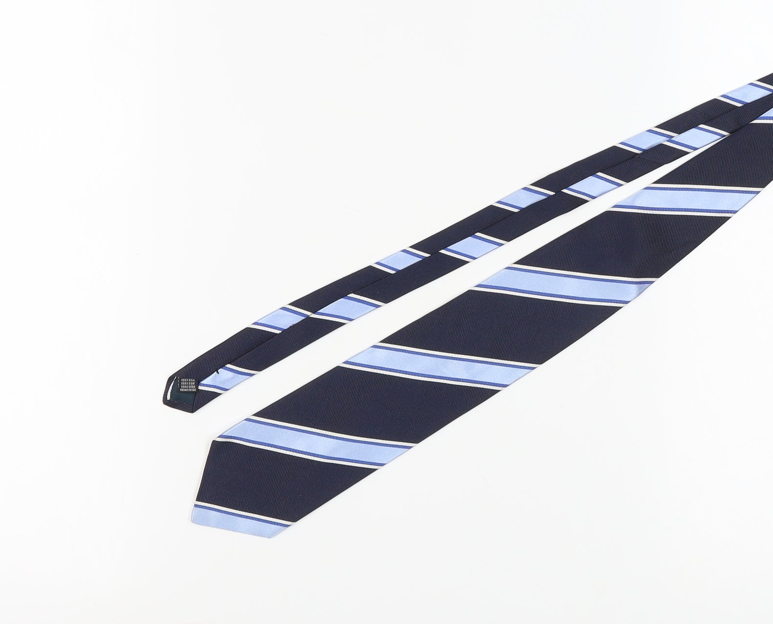 Elevate your formal or business attire with this sophisticated Redgreen Men's Blue Striped Silk Slim Tie. Crafted from 100% silk, this luxurious tie offers a sleek and elegant finish, perfect for adding a touch of sophistication to any outfit. The classic blue colour paired with a subtle striped pattern provides a modern twist on a timeless design, making it an ideal choice for any occasion that calls for style and class. Whether you're heading to a wedding, an important business meeting, or a formal dinner, this tie will enhance your look effortlessly. Its slim design ensures it complements a variety of suit styles, while the high-quality silk fabric guarantees durability and a refined appearance. Redgreen's attention to detail can be seen through its immaculate construction and chic appeal. The tie is brand new, ensuring a pristine condition that is free of any defects. Make a memorable style impression with this exquisite accessory that seamlessly combines tradition with contemporary flair.