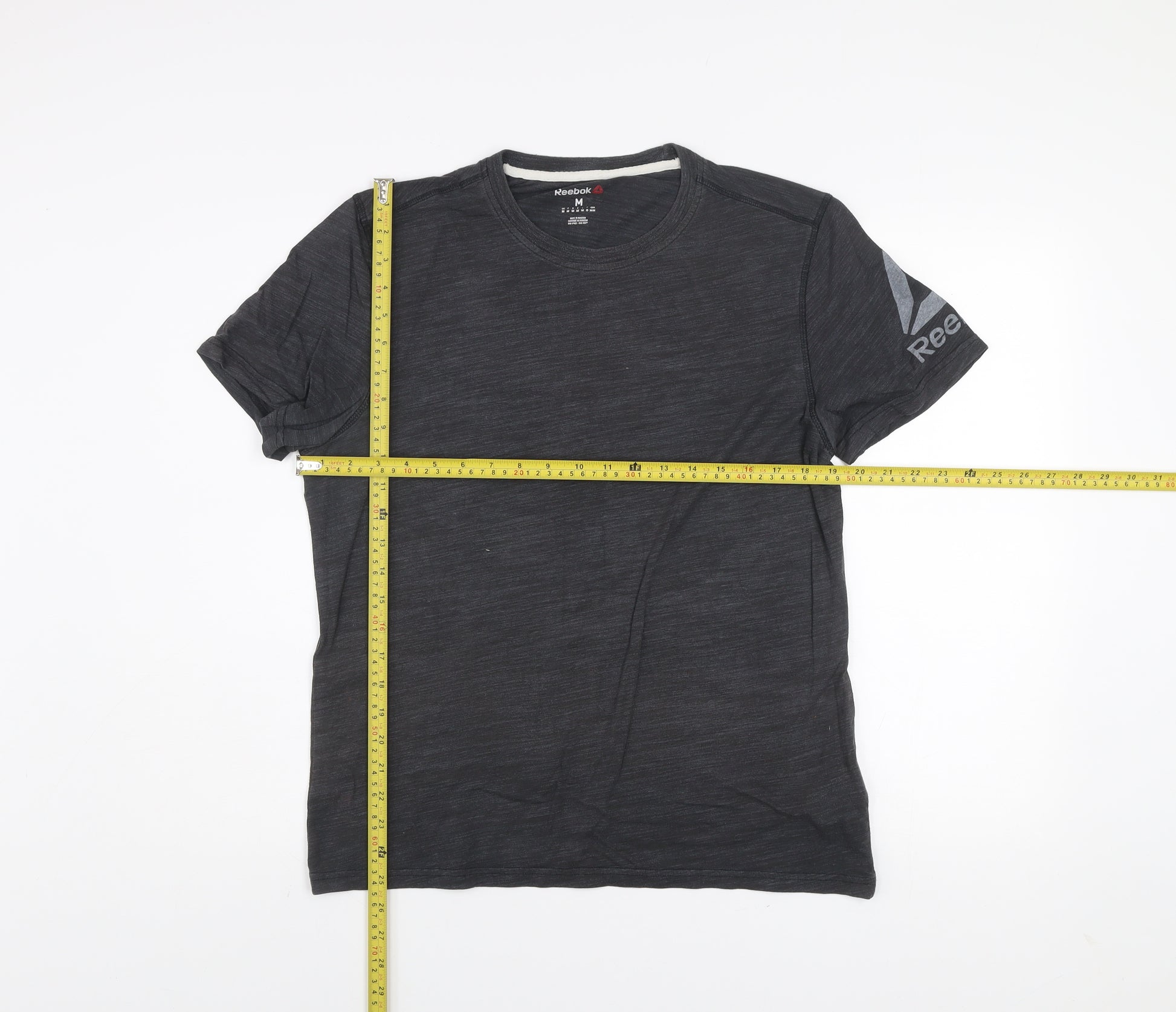 Refresh your performance wear collection with this sleek Reebok men's grey athletic fit T-shirt, designed for superior comfort and effortless style. Crafted from a soft yet durable blend of materials—80% cotton and 20% polyester—this T-shirt offers a breathable and lightweight feel perfect for workouts or casual wear. The moisture-wicking fabric helps to keep you dry and comfortable whether you're training in the gym, out for a jog, or engaging in any other active pursuit. The crew neck design and short sleeves provide a classic look, while the quality construction ensures flexibility and freedom of movement during physical activities. Featuring the signature Reebok logo printed on the sleeve, this piece subtly showcases the renowned sportswear brand’s identity without overwhelming your outfit. The solid grey colour makes it versatile enough to pair with shorts, joggers, or casual jeans for an understated yet sporty aesthetic. The regular size medium fit, with an athletic cut, flatters the physique while maintaining optimal comfort. Ideal for spring, summer, and autumn wear, this T-shirt can handle your most demanding training routines yet look stylish enough for pre- and post-workout outings. Designed with ease of care in mind, this garment is fully machine washable, retaining its shape and softness after multiple washes. Offering the perfect balance between performance tech and everyday wearability, this Reebok activewear top is an essential staple for modern, active lifestyles. Whether you’re hitting the gym or simply appreciating the comfort of high-quality sportswear, this piece delivers standout functionality and Reebok’s trusted durability. In excellent pre-owned condition with only minor signs of gentle wear, it’s a brilliant addition to any fitness-conscious wardrobe at a great value.