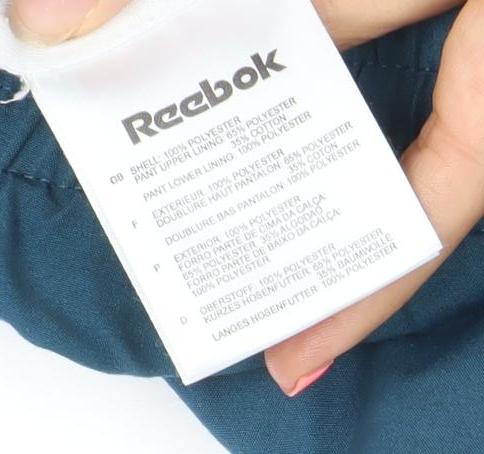 Enhance your athletic wardrobe with these Reebok Men’s Track Pants, designed for comfort and versatility during workouts or casual wear. Made from 100% polyester woven fabric, these trousers are lightweight, breathable, and quick drying—ideal for everything from gym sessions to outdoor jogging. The deep blue tone offers a sleek, modern look suitable for both active and relaxed settings, while the durable Reebok build ensures quality performance over time. Featuring an elasticated waistband with an adjustable drawstring for a personalised fit, they provide a secure and comfortable wearing experience. The straight-leg design offers freedom of movement without bulk, making them perfect for running, training, or simply lounging. Practical side pockets allow you to carry small essentials easily when on the go. The internal material structure promotes airflow, keeping you cool and comfortable throughout activities. These trousers are easy-care and machine washable, adding convenience to everyday activewear. The understated, logo-accented design captures the sporty simplicity Reebok is known for, delivering a timeless addition to any man’s sportswear collection. Ideal for spring, summer, or autumn use, they are especially suited for individuals who prefer performance wear that combines practicality with effortless athletic styling. Condition is excellent with only light creasing observed, showing minimal previous wear and maintaining strong visual appeal. Whether you’re training indoors, walking outdoors, or relaxing at home, these trousers ensure comfort and function in every step, embodying the essence of Reebok’s iconic athletic heritage.