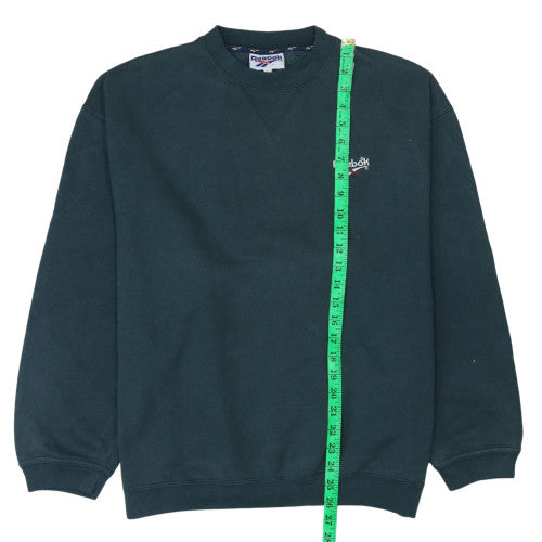Step into timeless athletic style with this Reebok men’s large sweatshirt. Crafted in a dark green cotton-polyester blend, this vintage pullover brings together comfort and classic sports fashion. The heavyweight fleece fabric makes it an ideal choice for cooler autumn, winter, and early spring days, while its soft lining delivers lasting warmth and cosiness. The crew neck design paired with ribbed cuffs and hem provides a secure yet relaxed fit for everyday wear. Designed in Portugal, this Reebok sweatshirt is constructed with quality materials—70% cotton and 30% polyester—for a soft, durable finish that holds its shape over time. The embroidered Reebok logo on the chest adds a distinctive vintage accent, bringing a touch of retro sportswear charm that easily fits into casual modern wardrobes. Perfect for gym sessions, a weekend outing, or staying warm on the go, this pullover offers both functionality and stylish appeal. With its simple, clean aesthetic, it’s effortlessly wearable with jeans, joggers, or shorts. An authentic piece for enthusiasts of heritage athletic wear, this crew neck sweatshirt celebrates Reebok’s classic era with understated confidence. Its versatile green tone complements a wide range of outfits, making it an easy everyday staple. Ideal for men who value durability, quality craftsmanship, and iconic design, this piece suits casual streetwear lovers as well as those who appreciate practical vintage sports fashion. Whether you wear it to layer up for outdoor training, a trip around town, or simply staying comfortable at home, this sweatshirt provides warmth and enduring style. In excellent pre-owned condition with minimal signs of wear, it’s a standout choice for those seeking authentic vintage Reebok gear. A wardrobe essential that merges performance heritage with effortless style.
