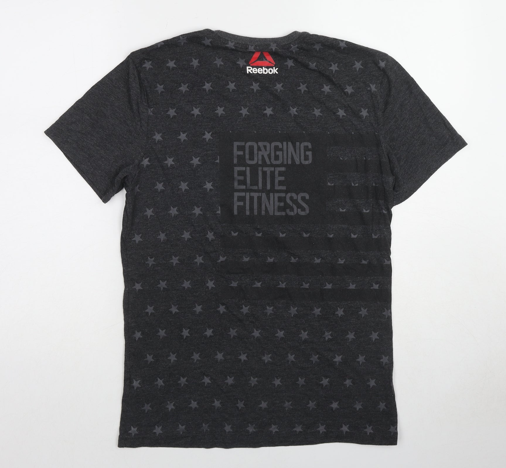 Mens Grey Geometric Polyester T-Shirt Size S Round Neck - Star pattern