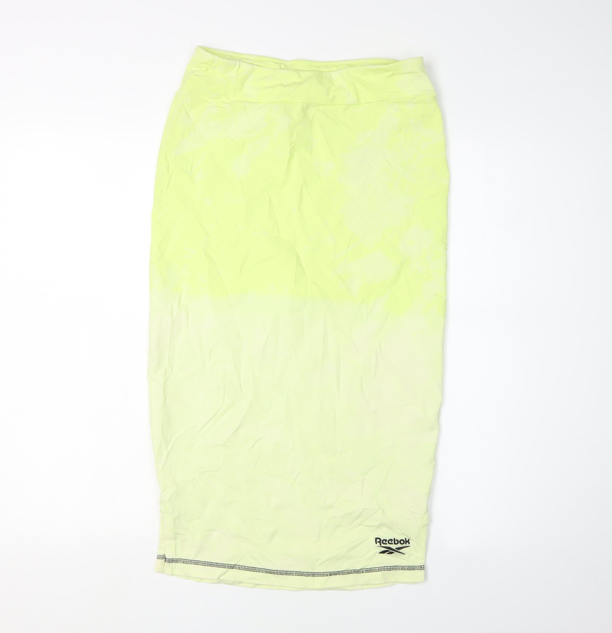 Upgrade your wardrobe with this eye-catching yellow midi skirt by Reebok, tailored for women's casual or travel wear. Made from 100% cotton, this straight and pencil skirt offers comfort and breathability, making it perfect for all seasons, particularly spring and summer. The elastic waist ensures ease of fit, allowing you to wear it comfortably throughout the day. The skirt features a sleek logo accent, adding a touch of sporty elegance to your outfit. Ideal for casual or travel occasions, this piece can easily be paired with a variety of tops and shoes to suit your style. As a product from Reebok, you can trust its quality and durability. Although in excellent condition with slight signs of wear, this skirt will still make a trendy addition to any wardrobe. Embrace the vibrant yellow hue to brighten up your look, whether you're exploring new destinations or enjoying a casual day out.