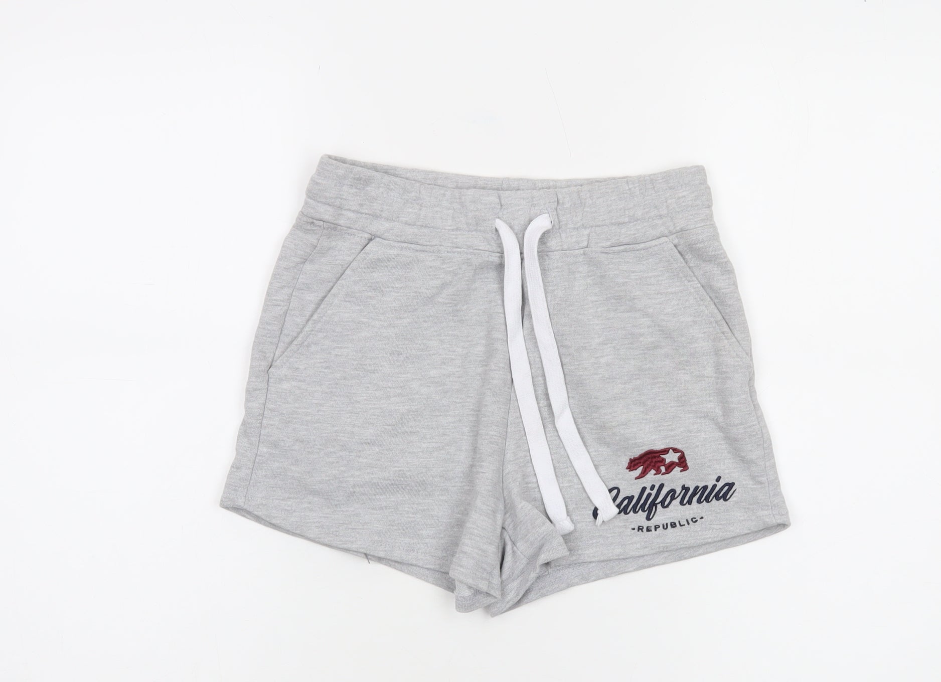 Womens Grey Sweat Shorts S Casual California Embroidered Activewear