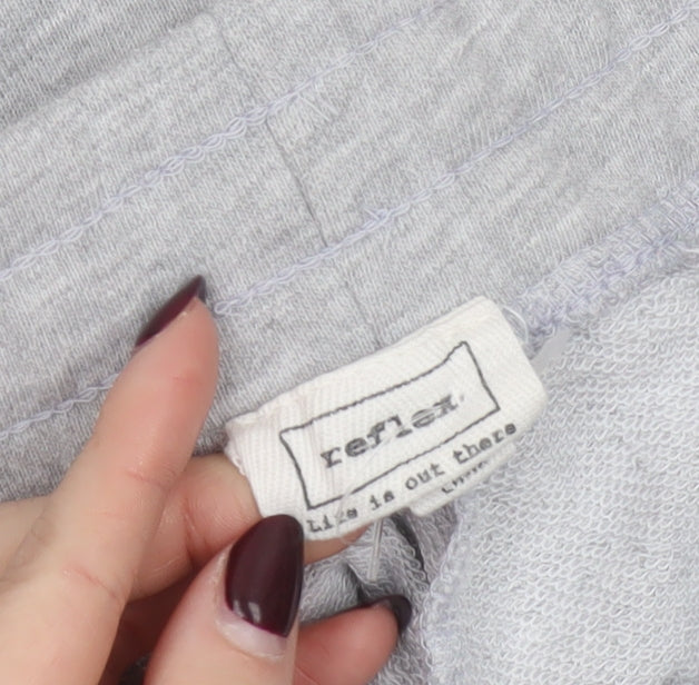 These Reflex women’s grey sweat shorts offer the ideal blend of comfort, style, and practicality for everyday wear. Made from a soft cotton and polyester jersey fabric, they provide a breathable yet cosy feel perfect for casual days, workouts, or lounging. The mid-rise elasticated waistband, adjustable drawstring, and relaxed-fit silhouette ensure a comfortable and secure fit that flatters a range of body types. Two practical side slash pockets add functionality, making them great for carrying essentials when on the go. Embroidered with the ‘California Republic’ motif in contrasting burgundy and navy tones, these shorts deliver a subtle athletic and lifestyle-inspired edge, suitable for those who love a sporty, chilled, or coastal vibe. Their versatile design allows for easy pairing with your favourite t-shirts, hoodies, or tanks, making them a must-have addition to your casual wardrobe. Whether you’re heading out for a yoga session, running errands, or enjoying a summer weekend, these versatile shorts will keep you cool and effortlessly stylish. Crafted to high quality, the fabric offers durability and softness even after multiple washes, ensuring long-lasting wear. The lightweight nature of the jersey material promotes breathability and flexibility, particularly appreciated in warmer weather or active routines. Maintaining them is simple, as they are machine washable and designed to retain their shape and colour. Ideal for spring and summer wear, these Reflex shorts highlight practicality without compromising on everyday fashion appeal. Comfortable, easy to style, and eye-catching in their simplicity, they strike the perfect balance between laid-back athletic wear and casual street style. A great choice for women who appreciate comfort, function, and a touch of urban Californian flair in their wardrobe. Refined with subtle embroidered detail and built-in stretch, these shorts deliver exceptional ease of movement, making them your go-to staple for both relaxing at home and stepping out in comfort this season.