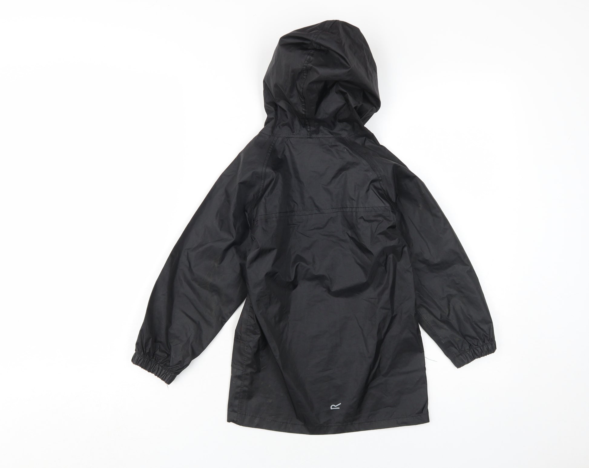 Keep your little one dry and comfortable with this Regatta Boys Black Waterproof Rain Coat, perfect for all seasons. Designed with a hood and full zip closure, this rain coat offers excellent protection against the elements. Made from high-quality polyester, it ensures durability and easy care with its machine-washable feature. The mid-length design and regular fit make it an ideal choice for casual outings, whether it's for a stroll in the park or a walk to school. With the added convenience of a zipped front, this rain coat is both practical and stylish. The coat is adorned with a subtle logo accent, showcasing the trusted Regatta brand known for outdoor excellence. Sized for a 2-year-old, this coat is a fantastic addition to any young boy's wardrobe, promising both functionality and style. A must-have item for parents seeking a reliable and affordable outerwear solution for their child.