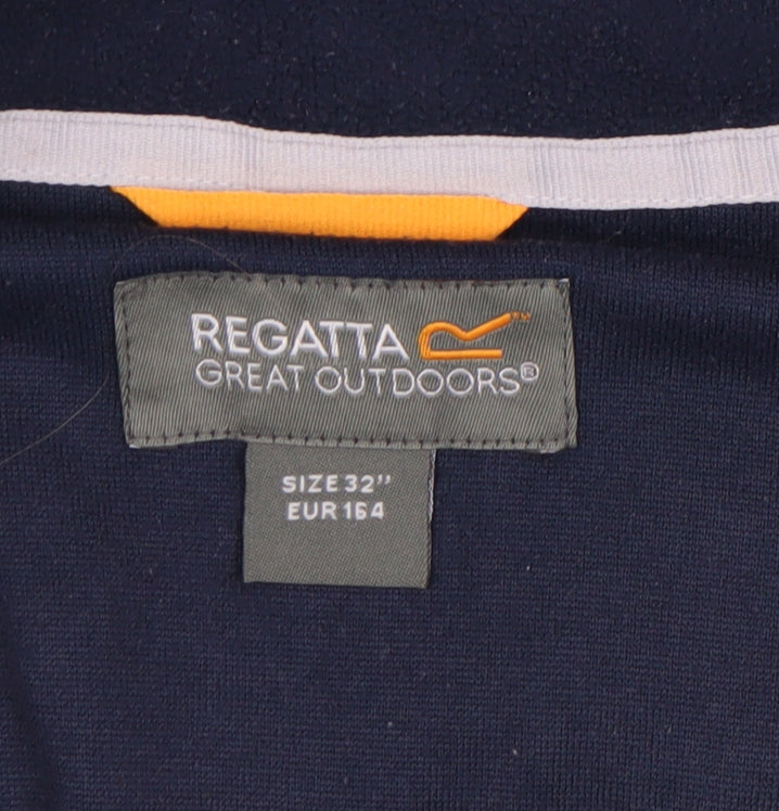 Explore the great outdoors in style with this Regatta boys' basic jacket. Designed in a timeless blue shade, it's perfect for young adventurers aged 13-14 years. Crafted from durable polyester, this jacket offers a reliable blend of comfort and functionality. Equipped with a full zip closure, it ensures easy wear and warmth retention, making it an ideal choice for autumn to spring adventures. Thoughtfully designed with zipped pockets, your young explorer can securely store small essentials while on the go. The mid-length cut provides ample coverage, and its lightweight nature allows for ease of movement during outdoor activities such as hiking or casual walks. Adorned with the Regatta logo, this piece blends practicality with a touch of active style. Though it lacks original sales tags, the jacket is in excellent condition, ready to accompany your child on endless memorable journeys. Whether it's a brisk morning walk or a casual day out, this versatile jacket is a must-have for any young wardrobe.