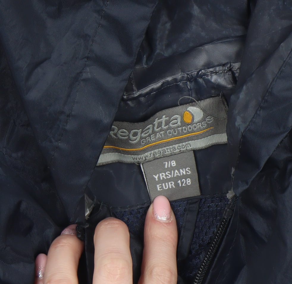 Keep your young adventurer ready for any weather with this Regatta Boys Blue Waterproof Hooded Rain Coat Jacket, designed to offer reliable protection and comfort. Crafted from durable 100% polyester, the outer shell delivers excellent water resistance, ideal for unpredictable spring and autumn showers. The mid-length design ensures good coverage without restricting movement, making it perfect for both school and outdoor activities like hiking, walking, and playtime. Featuring a lightweight and breathable construction, this jacket is lined for extra comfort and fitted with a full front zip for easy on and off wear. The elasticated cuffs help keep out wind and rain, while the practical hood provides additional protection from the elements. Two front pockets give space for essentials or to keep hands warm on cooler days. Its plain navy blue colour offers a timeless and versatile look that coordinates effortlessly with everyday outfits. Built for active children who love to explore, this jacket embodies Regatta’s focus on functional outerwear that’s made to last. The company’s signature logo accent on the front pocket adds a touch of authenticity and practical outdoor heritage. This pre-owned item is in very good condition, showing minimal wear and no defects, ensuring plenty of life left for its next wearer. It’s a great choice for parents looking for quality kids’ outerwear at a fair price. Machine washable for easy care, this rain coat is both practical and stylish, perfect for school runs, weekend adventures, or family holidays. Offering functionality, comfort, and trusted Regatta durability, this boys’ waterproof coat is a must-have for keeping little ones dry, comfortable, and ready for anything the great outdoors throws their way.
