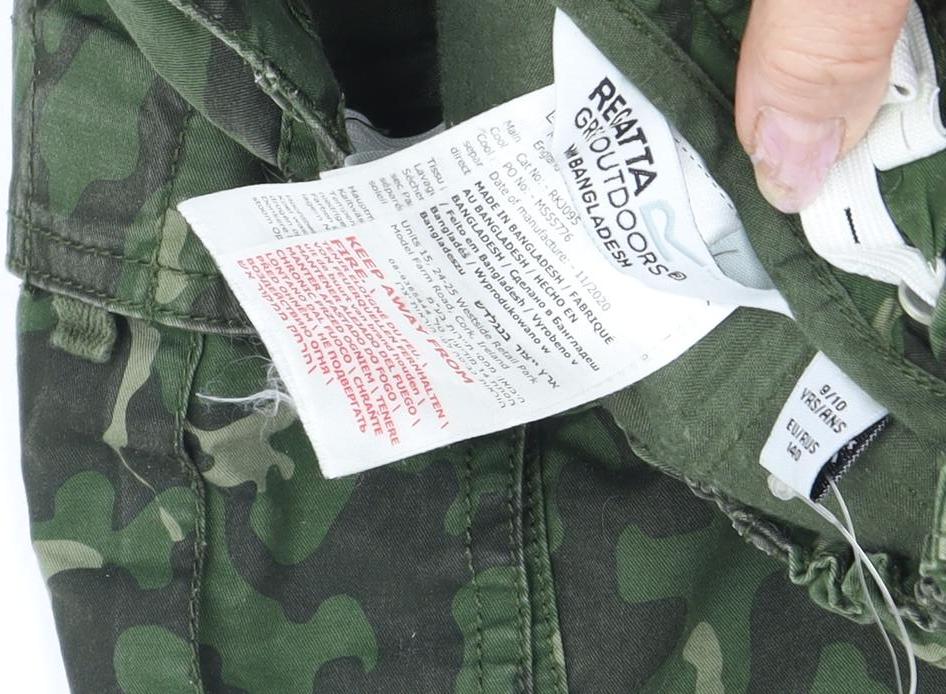 Equip your child with these stylish yet functional Regatta cargo shorts, designed for young adventurers. With a vibrant green camouflage pattern, these shorts are ideal for hiking and walking in both spring and summer. Crafted from a durable canvas fabric, they feature a blend of 98% cotton and 2% elastane for comfort and slight stretch. Each pair is equipped with practical features including an elastic waist and multiple pockets, making them perfect for all-day wear during outdoor activities. Their mid-rise design, combined with a flat front and regular fit, ensures a comfortable yet versatile look. The shorts are machine washable, meaning more time can be spent exploring instead of laundering. Whether your child is climbing trees or playing in the park, these Regatta shorts will be a go-to piece in their wardrobe. Grab them today for casual outings or everyday adventures.
