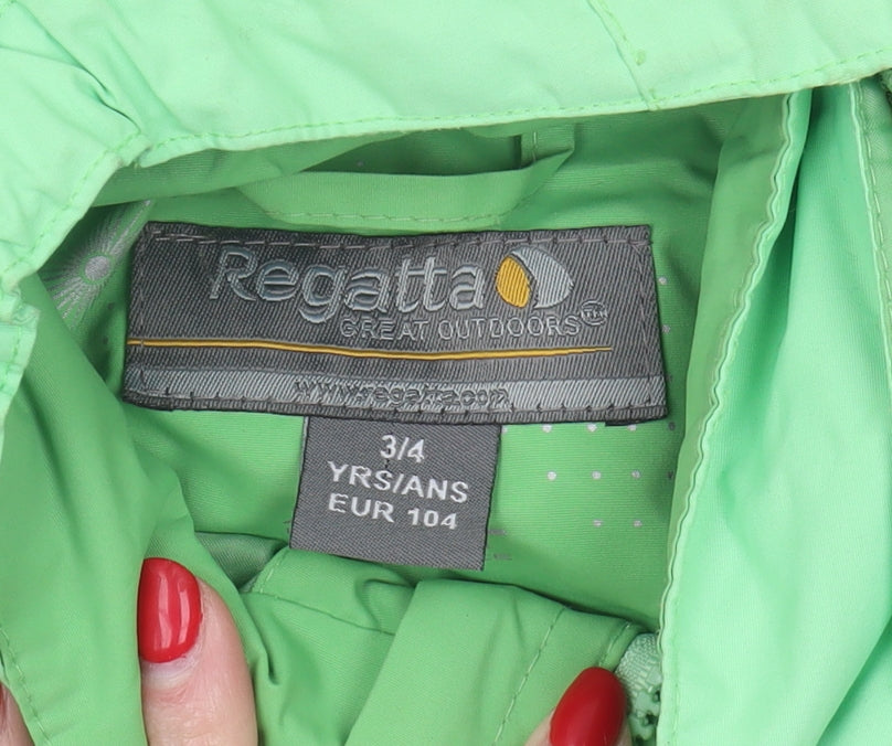 This Regatta Boys Green Waterproof Jacket in size 3-4 Years is the ideal outerwear for young adventurers. Crafted with 100% polyester, this hooded jacket is designed to offer superior protection against rain and wind, making it perfect for outdoor play and exploration. The vibrant green colour adds a fun touch, while the full zip closure ensures easy dressing and a secure fit. The jacket is lined with polyester, promising added warmth and comfort on cooler days. Featuring a regular fit and long sleeves, it provides ample coverage without restricting movement. Machine washable for easy care, this jacket is both practical and stylish. Though in excellent condition, it comes without the original sales tags. Whether for school or casual outings, this jacket is sure to keep your little one comfortable and dry, no matter the weather.
