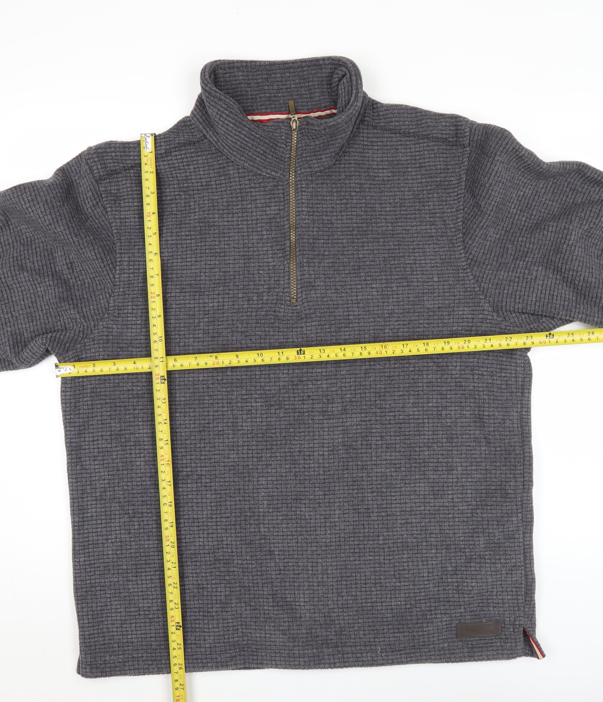 This Regatta men’s pullover fleece sweatshirt is a versatile piece of outdoor clothing designed with comfort and practicality in mind. Made from a durable blend of 78% polyester, 19% viscose, and 3% elastane, it offers a soft yet resilient feel while providing lightweight warmth – perfect for layering in colder weather. The dark grey colour and textured pattern give it a stylish yet understated look, making it suitable for both casual wear and outdoor adventures.The sweatshirt features a high mock neck with a practical half-zip fastening that allows for quick ventilation and easy wear, as well as long sleeves to provide extra coverage during chilly conditions. Its lightweight fleece fabric is breathable, making it ideal for activities such as hiking, walking, and general outdoor use across autumn, winter, and spring. Designed in a size Large (UK L, equivalent to EUR 52-54), it has a regular fit, ensuring comfort without being too restrictive.Finished with Regatta branding for an authentic touch, this sweatshirt is machine washable, ensuring easy garment care. In excellent condition with only light signs of previous wear and no visible flaws, it represents great value and durability for everyday use. Whether layered under a jacket during winter hikes or worn alone on a cool autumn evening, this Regatta fleece is a reliable staple for any wardrobe. Practical, warm, and easy to style, it combines outdoor performance with casual comfort.Perfect for those who enjoy an active lifestyle as well as those seeking comfort in their everyday wardrobe, this piece balances functionality and classic design, making it a must-have for year-round wear.