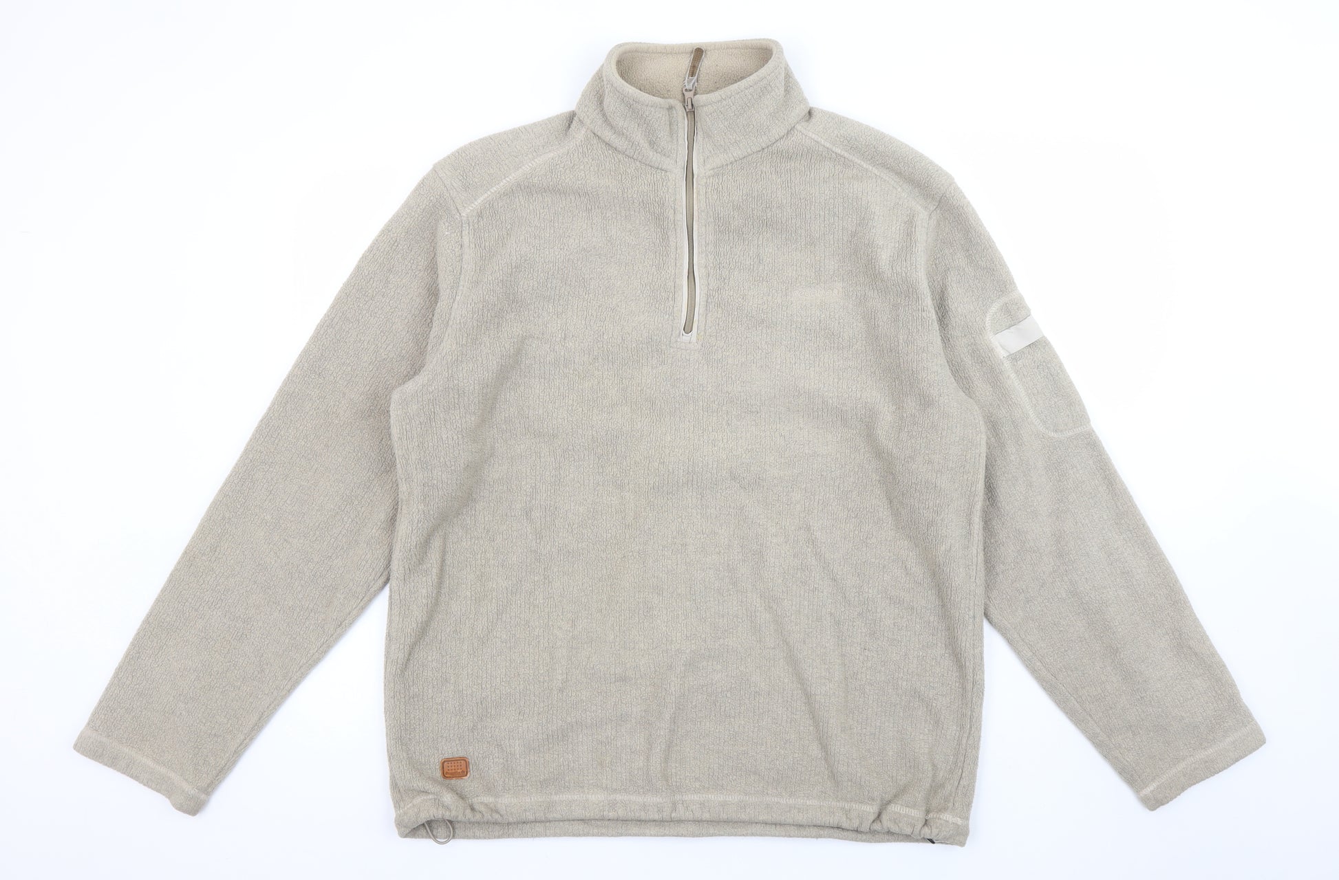 Men's Beige 1/4 Zip Fleece Sweatshirt L Outdoor Pullover