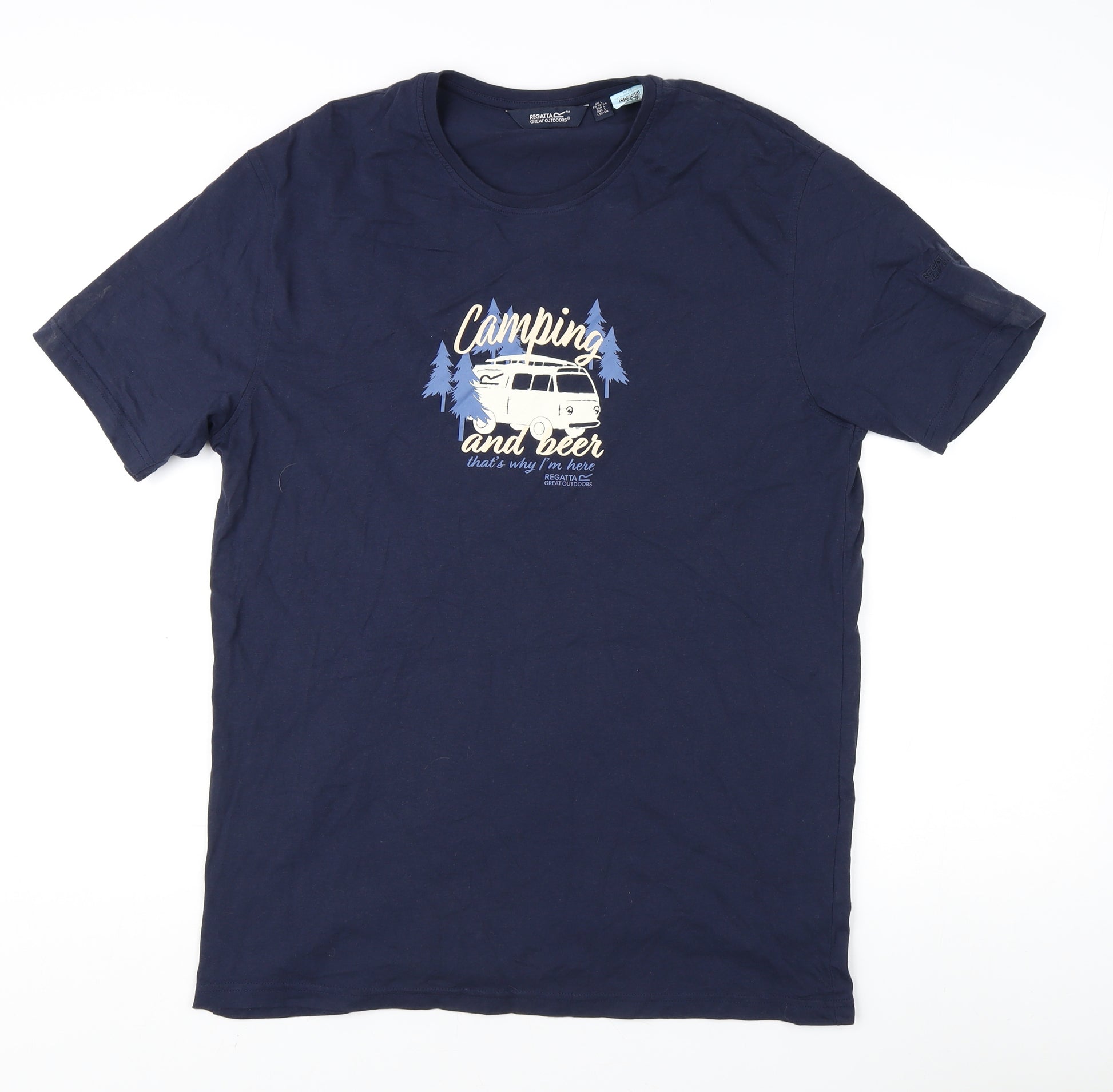 Elevate your casual wardrobe with this Regatta Men's T-Shirt, perfect for any outdoor enthusiast. Crafted from soft and breathable cotton with a touch of elastane for added comfort and flexibility, this navy blue T-shirt features a striking 'Camping and Beer' graphic print, ideal for those laid-back weekends. Designed with a versatile crew neck and short sleeves, it offers a relaxed fit that's perfect for both casual outings and camping adventures. The high-quality jersey fabric ensures durability, while the simple yet stylish design adds a fun twist to your summer wardrobe. Whether you're planning a camping trip or just enjoying a casual day out, this T-shirt is an excellent choice. Easy to care for, it's machine washable, making it a practical addition to your collection. Don't miss out on this comfortable and trendy T-shirt that's sure to become a favourite go-to piece.