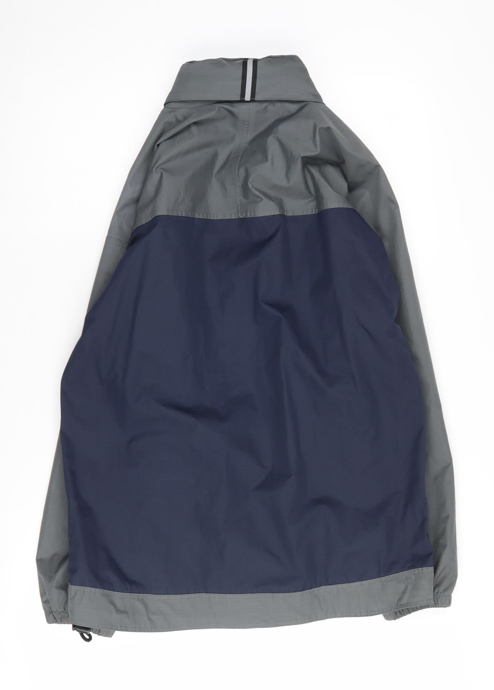 This Regatta men's outdoor jacket, sized at 164, is a versatile piece perfect for cooler months and adventurous outings. Crafted with a durable polyester and PVC outer shell, it offers reliable protection against the elements. The classic blue and grey colour combination adds a touch of sophistication to your outdoor attire, suitable for both casual and brisk hikes or walks. Designed with practicality in mind, this jacket features a stand-up collar and a secure zip and button closure to keep out the chill. The zipped pockets are ideal for carrying essentials, making this jacket as functional as it is stylish. The interior is lined with soft polyester and polyamide fabrics, ensuring comfort and additional warmth during the autumn and winter seasons. Its regular fit and mid-length cut provide ample coverage, making it an essential addition to any active wardrobe. Whether you’re exploring the great outdoors or running errands in town, this Regatta jacket offers both form and function, ensuring you stay warm and comfortable throughout the day. Machine washable for easy care, it combines practicality with style effortlessly. This jacket is in excellent pre-owned condition, showing no visible flaws or damage, and it's perfect for those seeking quality outdoor gear at an accessible price point.
