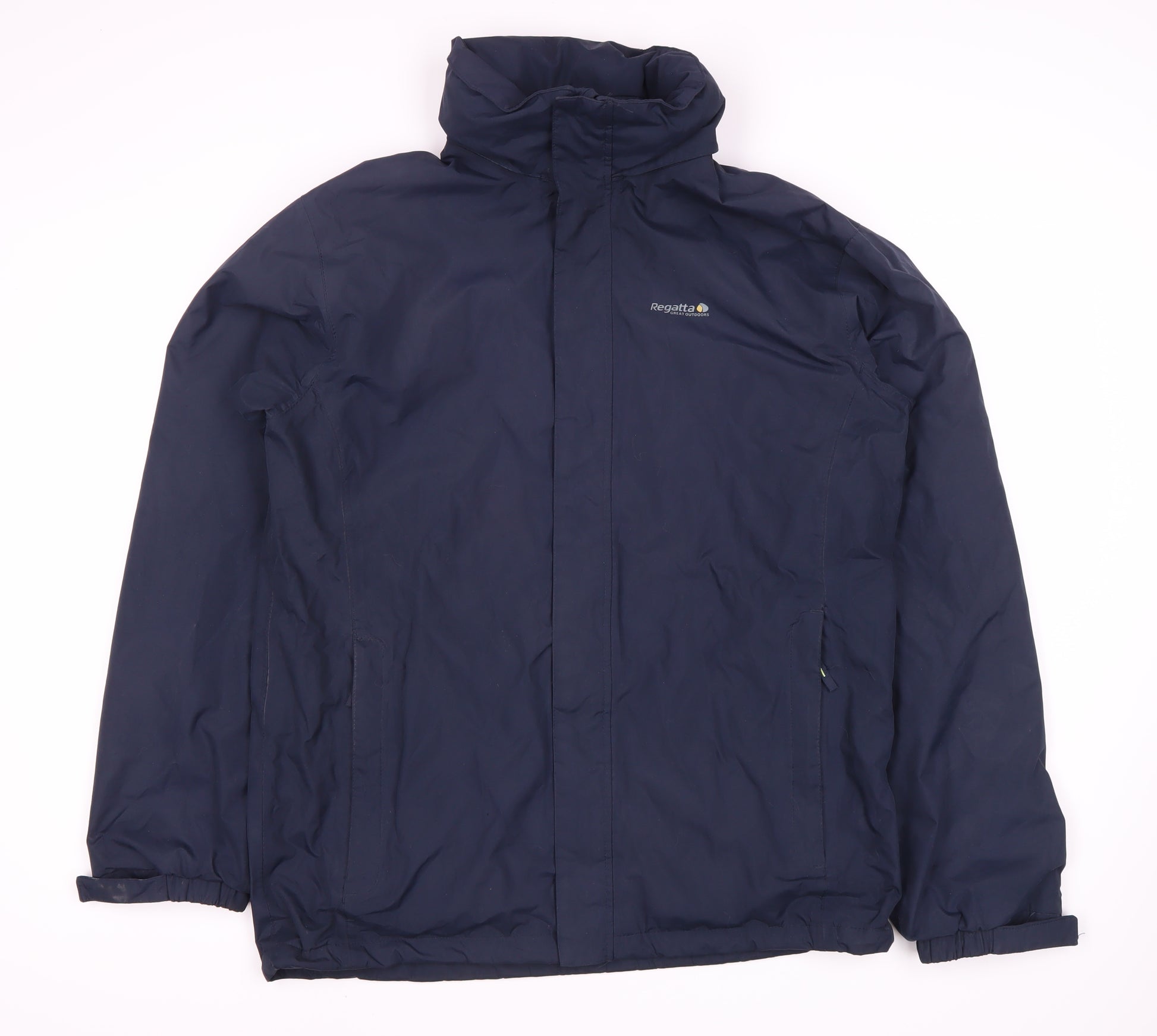 Explore the outdoors in style with this Regatta Men's Blue Jacket, perfect for a range of activities such as hiking and walking. Designed for the outdoorsman in mind, this jacket is constructed with 100% polyester, ensuring water resistance and durability. It features a regular fit for comfort, making it an ideal choice for casual occasions. The jacket comes in a classic blue hue, complementing a variety of outfits effortlessly. With a zip closure and a practical design, it ensures you stay protected and comfortable during those cool spring and autumn days. This mid-length jacket, adorned with the iconic Regatta logo accent, combines functionality with timeless style. Easy to care for, it's machine washable, removing the hassle from your outdoor adventures. Despite no tags, the jacket is in excellent condition with only slight wrinkles observed. Whether you're heading into the woods or commuting through the city, this reliable piece ensures you're ready for any journey. Embrace the outdoors with confidence and flair with this Regatta jacket.