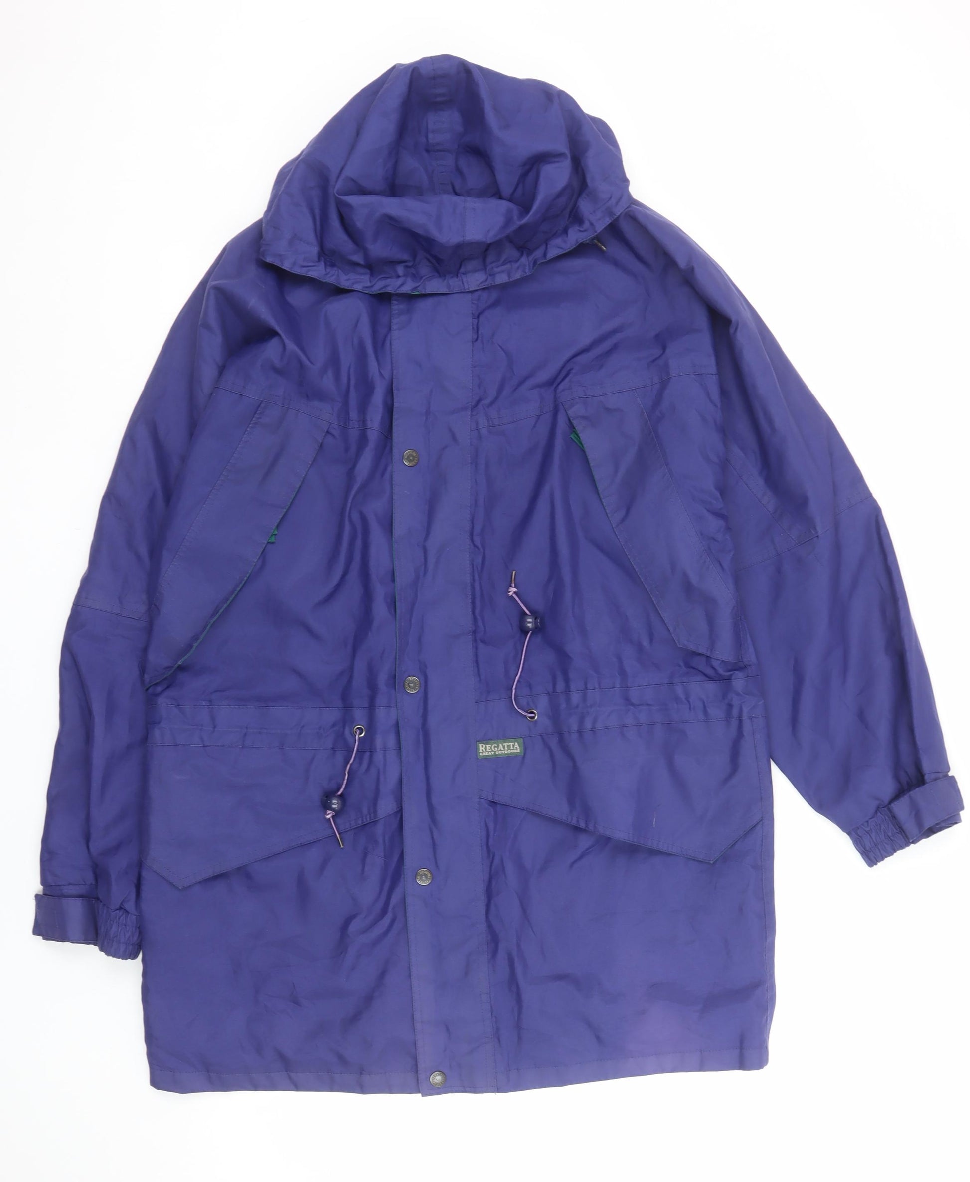 Stay ready for any outdoor adventure with this practical and durable Regatta men's waterproof parka jacket. Designed with exploration and comfort in mind, this blue full-length jacket offers dependable protection from the elements. Made from a tough nylon outer shell, it features a lightweight yet resilient design perfect for hiking, walking, camping, or everyday outdoor use. The jacket includes a hood for full coverage, a zip and snap fastening for a secure fit, and taped seams to ensure full waterproof performance. Convenient pocket placements combine style with everyday practicality, while the adjustable drawstring waist allows for fit customisation and improved weather protection. The interior provides an unlined finish for breathability, making it ideal for layering over warm clothing during colder months. This jacket is in excellent condition, demonstrating only minor signs of previous use and no visible damage or flaws. It retains the authentic vintage styling from Regatta’s ‘Great Outdoors’ collection, offering a nostalgic yet timeless piece of outerwear. Suited for casual wear, autumn hikes, or travel, it captures the spirit of British outdoor adventure. With its durable nylon construction, reliable weatherproof technology, and hallmark Regatta performance, this coat promises lasting function and classic appeal. The deep blue colour compliments a wide range of outfits, making it both practical and stylish for year-round use. Perfect for outdoor enthusiasts or those who appreciate vintage utility fashion, this Regatta waterproof parka jacket is a dependable addition to any wardrobe.