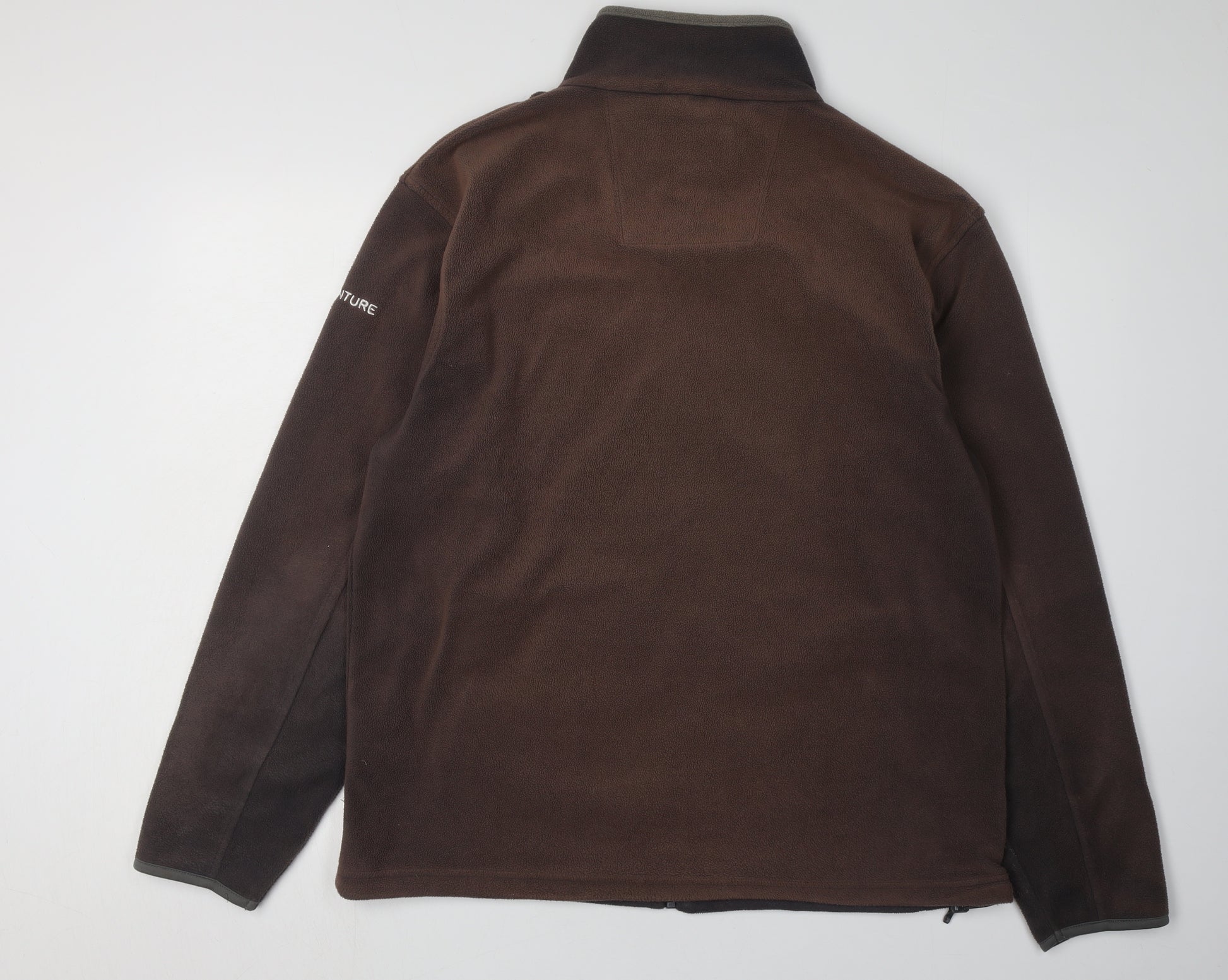 Men's Brown Fleece Jacket, Size L, Casual Outdoor