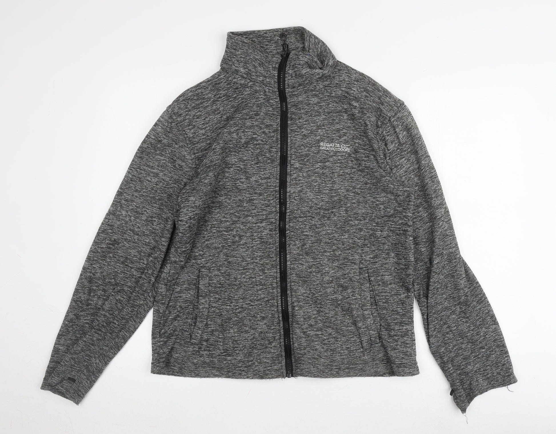 Stay cosy and stylish with the Regatta Men's Grey Full Zip Hoodie, crafted from 100% polyester for lightweight durability. This hoodie offers excellent comfort for all your outdoor adventures, whether it's a hike, a casual walk, or just lounging about. The high neck and full zip closure ensure you stay warm while adding a sleek look. It features a subtle logo accent, enhancing its sporty appeal. Perfectly suited for the autumn and winter months, this long-sleeved hoodie provides a regular fit ideal for layering. With its machine-washable care instructions, maintaining its fresh look is hassle-free. Excellent condition with light wear demonstrates its practicality and value, offering a fantastic choice for any wardrobe. Versatile, it pairs effortlessly with jeans or sportswear for a variety of occasions.