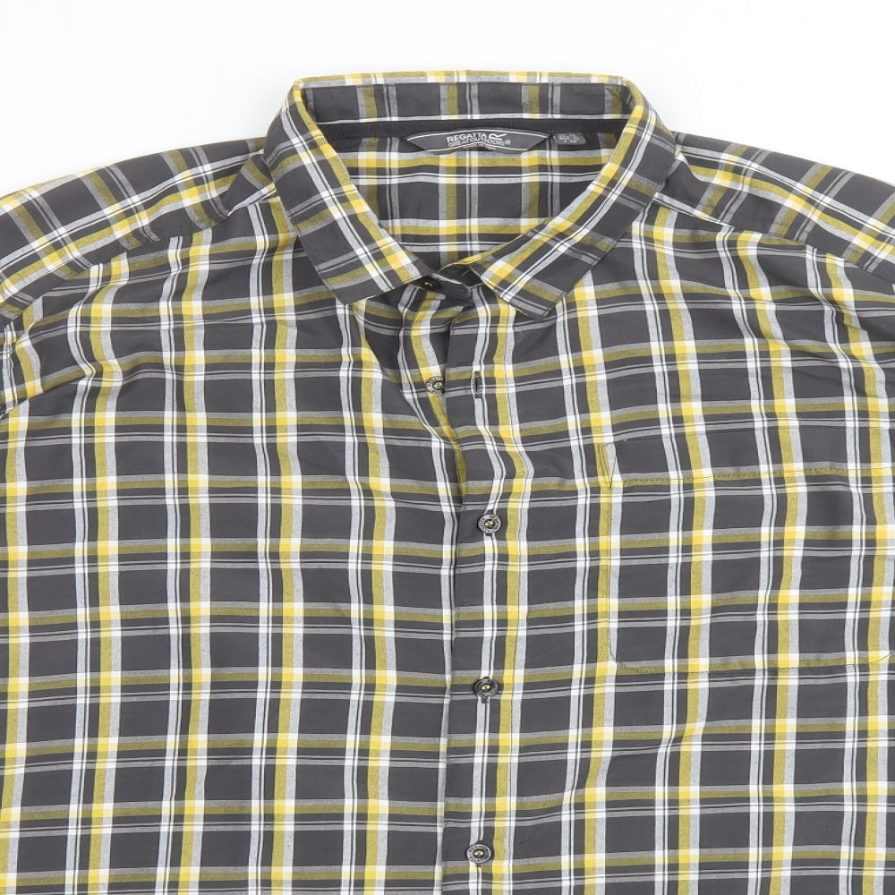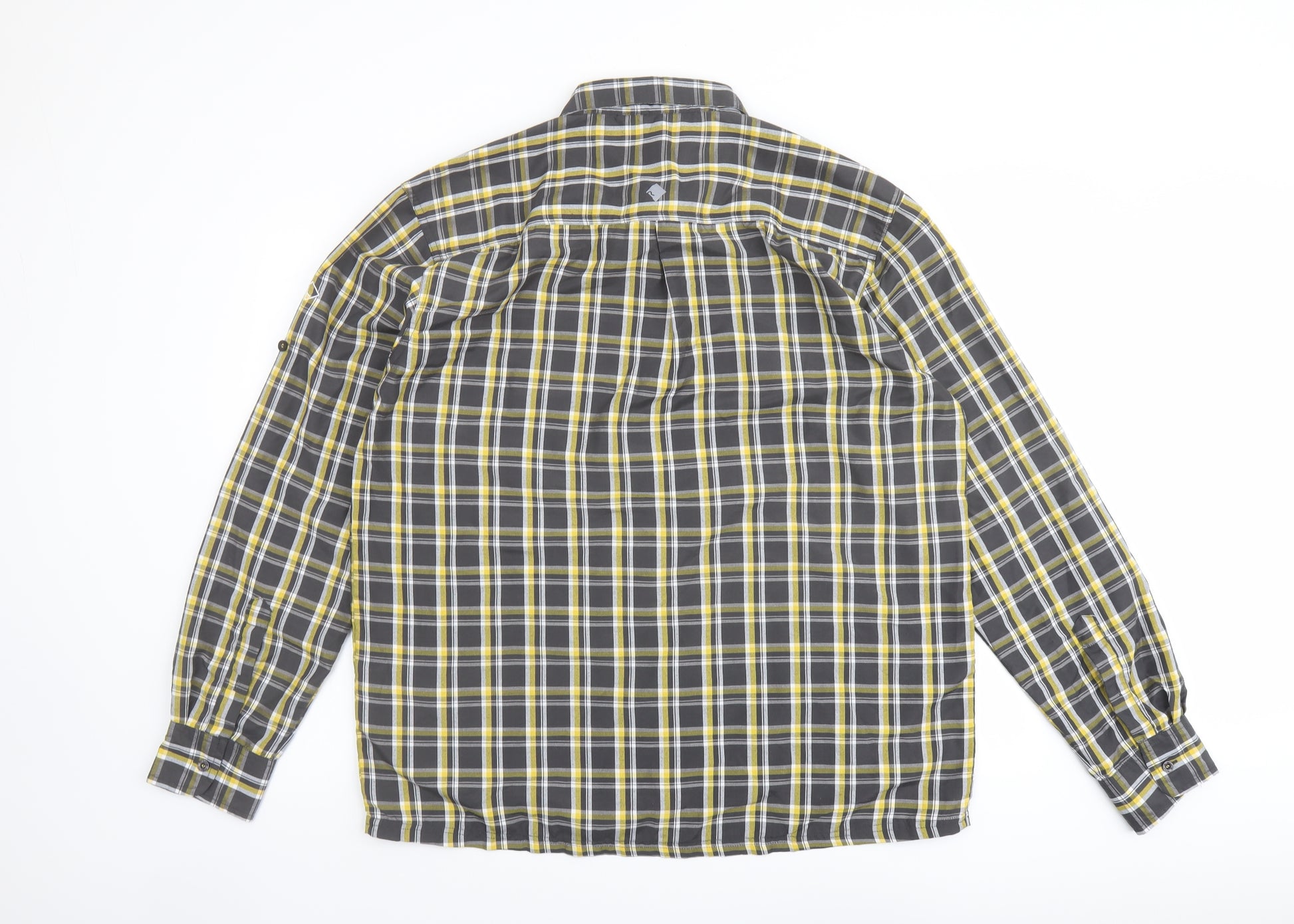 Mens Grey Plaid Polyester Button-Up Size XL Collared Button