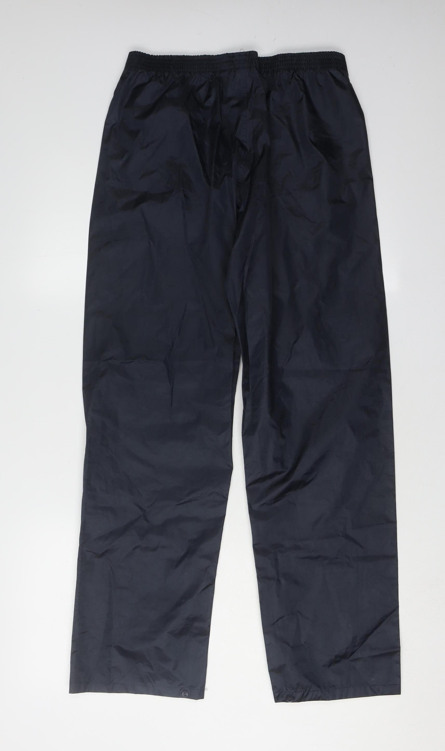 Get ready for your next adventure with these Regatta Unisex Kids Rain Trousers in sleek black. Designed with comfort and durability in mind, these trousers are crafted from 100% polyester, ensuring they are both lightweight and waterproof. Perfect for hiking, walking, or just splashing around on a rainy day, these trousers will keep your child dry and comfortable. The elastic waistband provides a snug fit, while the straight leg style offers a relaxed and easy movement. Whether it's for activewear or casual occasions, these trousers are versatile enough to suit any need. Easy to care for, simply machine wash them to keep them in great condition. Ideal for autumn and winter seasons, they are also a practical choice for school trips or outdoor play. In excellent condition, these trousers are a fantastic addition to any young adventurer’s wardrobe.