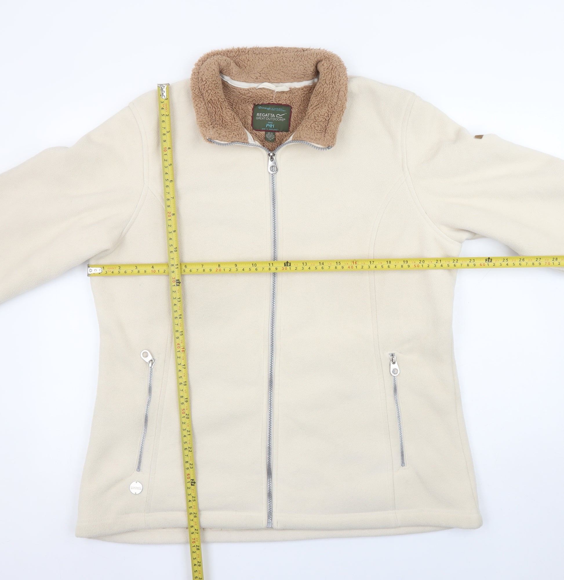 Women Beige Fleece Jacket Size 16 Full Zip Outdoor Warm