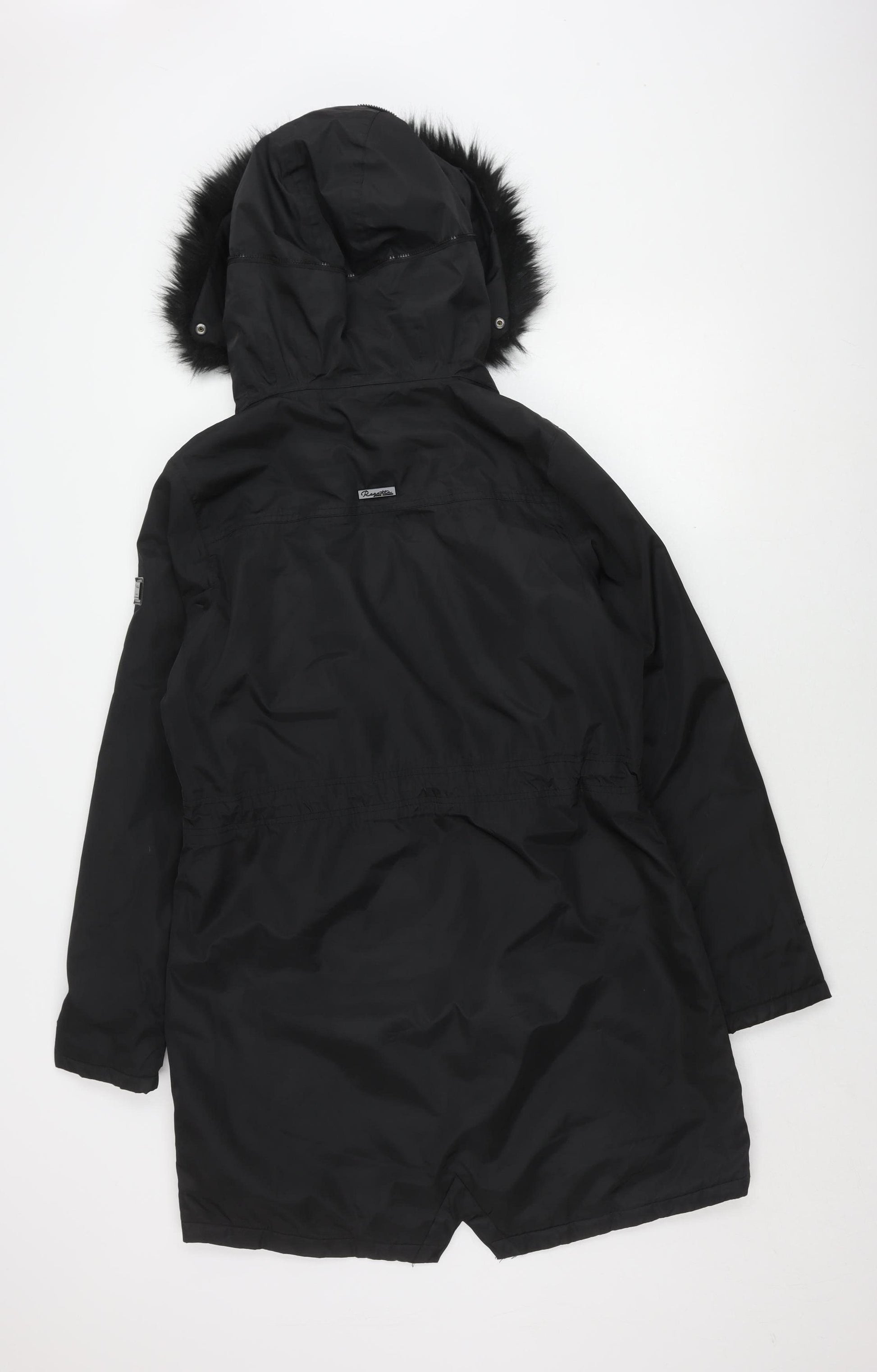 Stay cosy and stylish with this Regatta Women's Parka Coat in sleek black, perfect for the chilly autumn and winter months. Designed for casual outdoor adventures, this coat offers a regular fit that is both comfortable and flattering. Made from durable polyester with a unique acrylic blend, it features a hooded style complete with a trendy fur trim to keep you warm and protected from the elements. Its mid-length design provides ample coverage, making it a practical choice for various weather conditions. The coat boasts convenient zipped pockets to keep your belongings secure and easily accessible. Lined with polyester, it ensures a comfortable wear throughout the day. With its long sleeves and classic parka style, this coat effortlessly combines functionality with fashion. Despite minimal wear, the coat remains in excellent condition, offering you the look and feel of a new item without the price tag. Priced economically, this versatile and machine-washable garment is perfect for everyday wear, whether you're heading to the office or out for a weekend adventure. Upgrade your winter wardrobe with this timeless piece and enjoy the cosy warmth and reliable style of the Regatta brand.