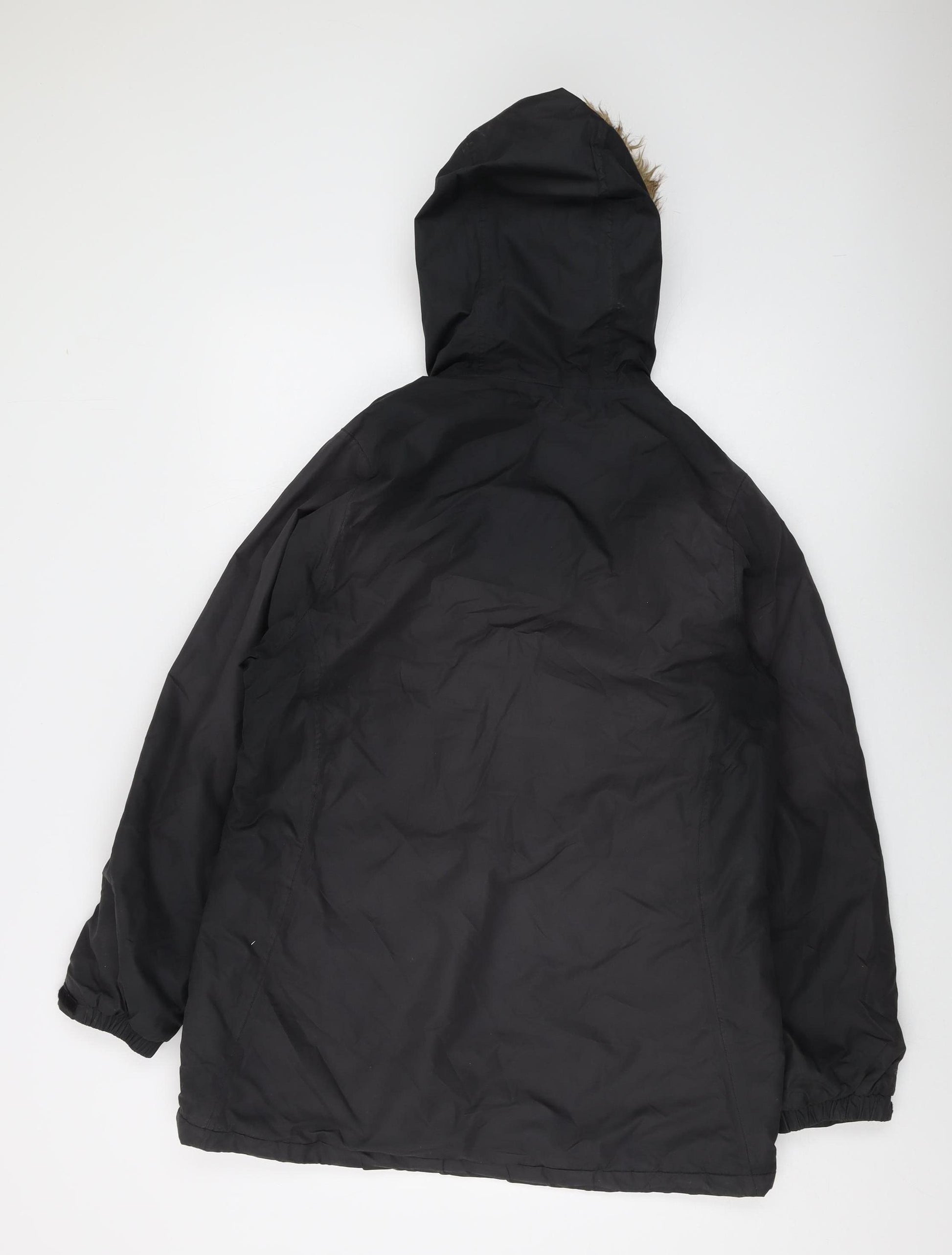 Explore the great outdoors in style with this Regatta Women's Parka Jacket. Designed in a sleek black colour, this jacket combines practicality and fashion for the perfect autumn and winter wear. Made from a robust outer shell material of 100% polyester, it offers excellent durability and protection against the elements. The jacket features a comfortable hood with a cosy faux fur trim, adding both warmth and an element of style. Waterproof and breathable, it ensures you stay dry and comfortable regardless of the weather. Taped seams provide additional water resistance, making this jacket a reliable choice for unpredictable weather. The jacket's mid-length design is complemented by a regular fit and long sleeves, ensuring you remain warm and snug. The polyester lining and insulation material offer additional warmth, making it ideal for colder climates. With convenient zip closure, it's easy to slip on and off, allowing you to adjust your comfort effortlessly. Perfect for women with a love for the outdoors, this Regatta Parka Jacket, in a regular size 14, is ideal for those weekend adventures or daily commutes. Available in excellent condition, with minor signs of wear, it offers great value and style in one versatile package. Ideal for layering over winter jumpers or casual tees, this jacket combines comfort, convenience, and chic style. Don't miss out on this essential piece that effortlessly balances functionality and fashion.