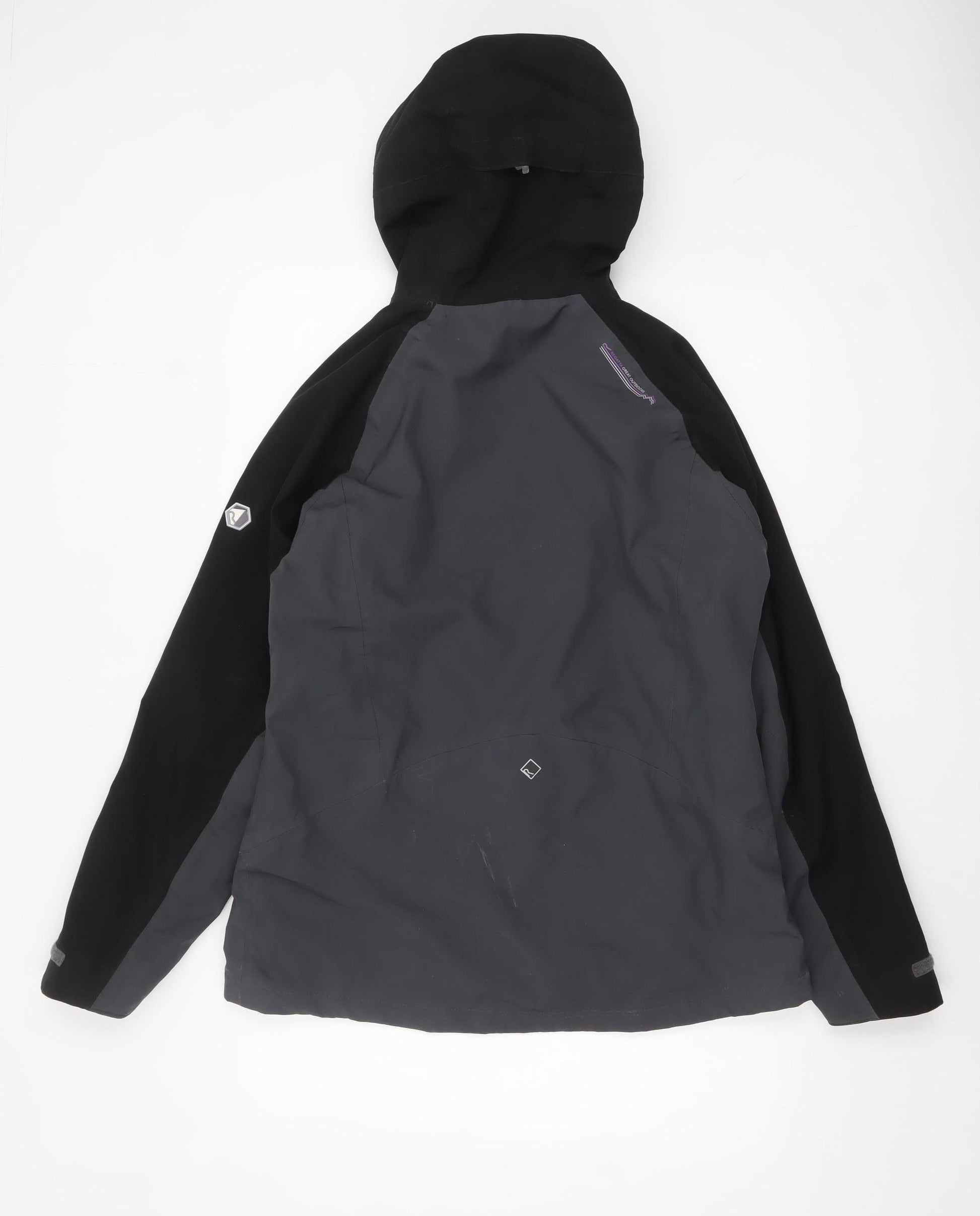 Stay dry and comfortable in the Regatta Women’s Black Waterproof Softshell Jacket, designed to tackle unpredictable British weather in style. This versatile outdoor jacket is crafted for women who demand both performance and comfort, featuring a breathable and water-repellent polyester outer shell that shields against rain and wind while keeping you cool throughout movement. Its soft mesh lining enhances ventilation and adds a lightweight feel, ideal for layering in autumn, winter, or spring. The jacket sports a flattering feminine cut in a UK size 14, designed to sit comfortably with room for layering underneath. Functional features include an adjustable hood, a secure full front zip, multiple zipped pockets for essentials, and adjustable cuffs for added protection from the elements. The mid-length design provides excellent coverage, while subtle purple interior details and zip accents lend a stylish and sporty touch. Perfect for casual wear, travel, or outdoor adventures, this Regatta Great Outdoors jacket blends practicality and contemporary design effortlessly. The windproof and waterproof construction ensures durability and reliability whether you’re hiking through the countryside or commuting in the rain. The combination of lightweight comfort and technical protection makes it an ideal companion for your everyday activities and weekend getaways alike. Although lightly worn with minor signs of use on the back, this jacket remains in very good condition overall, offering years of continued wear. With its strong reputation for quality and comfort, Regatta delivers exceptional value in outdoor apparel. An essential wardrobe piece for women who appreciate function and style, this black waterproof softshell jacket is a dependable choice for keeping you warm and dry whatever the weather.