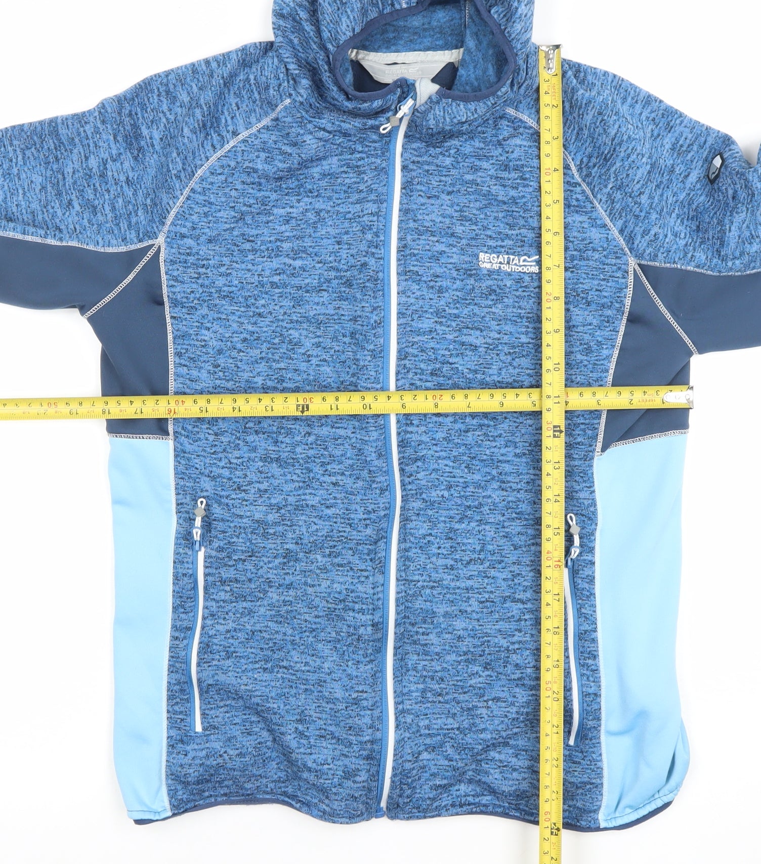 Stay comfortable and look stylish in this Regatta Women’s Blue Hooded Full Zip Softshell Jacket, designed for both outdoor adventures and relaxed everyday wear. Crafted from a soft yet durable blend of polyester, viscose, and elastane, the jacket offers a balance between warmth and mobility. The mid-length design and lightly textured knit finish create a sporty yet flattering silhouette that works equally well for walking, travelling, or layering on cooler days. Designed with practicality in mind, this jacket features a full front zip fastening for easy wear, two secure zipped front pockets, and a functional hood for extra protection against unpredictable weather. The breathable and stretch construction ensures comfort during active pursuits, while the lightweight fabric makes it ideal for transitional seasons such as autumn and spring. Subtle logo detailing on the chest adds a touch of Regatta’s signature outdoor styling, while the deep blue tones are versatile and easy to pair with casual outfits. In excellent pre-loved condition, this piece shows minimal signs of previous wear and remains clean and well cared for. Whether you’re heading out for a countryside walk, running errands, or layering up for a brisk commute, this Regatta jacket provides dependable comfort, flexibility, and simple everyday style. Perfect for outdoor enthusiasts, commuters, and casual wearers alike, it's an affordable and practical addition to any wardrobe.