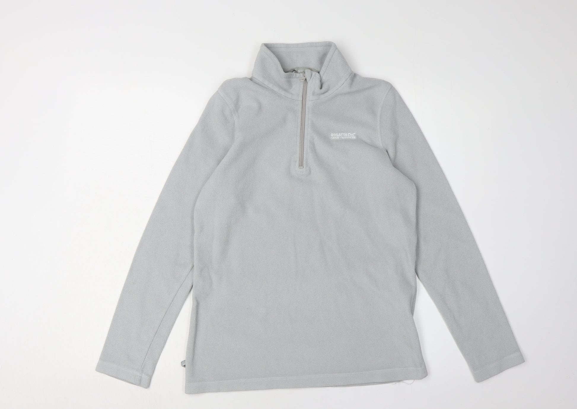 Embrace the cooler months in style with this Regatta Women's Grey Fleece Sweatshirt. Crafted for comfort and functionality, this sweatshirt is perfect for both casual wear and active pursuits. Its soft fleece fabric ensures warmth during autumn and winter adventures, while the high neck design and 1/4 zip closure provide versatile options for layering. The neutral grey colour complements any outfit, making it an essential addition to your wardrobe. Ideal for women seeking a balance of fashion and practicality, this sweatshirt is perfect for hiking, walking, and gym sessions. The logo accent adds a touch of brand recognition without overwhelming the design. Made from 100% polyester, this sweatshirt offers durability and easy care, being machine washable for your convenience. With its regular fit and long sleeves, it allows for unrestricted movement, ensuring comfort throughout your activities. This sweatshirt, in excellent condition, shows minimal signs of wear, making it a great value buy. Discover effortless style and functionality with the Regatta Women's Fleece Sweatshirt, ready to enhance your seasonal wardrobe.