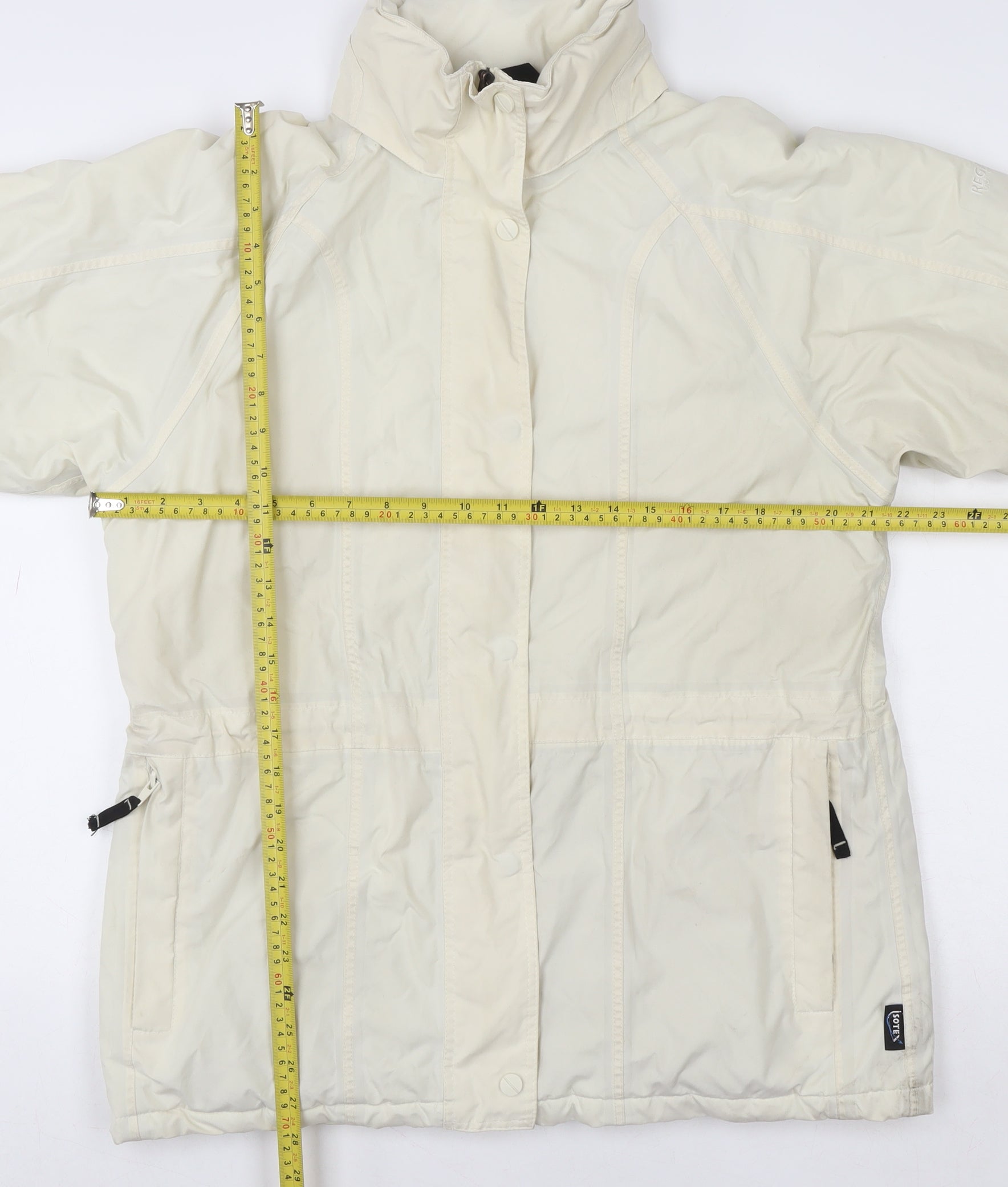 Stay dry and stylish with this Regatta Women’s Ivory Waterproof Parka Jacket in size 12. Designed for the woman who values both performance and practicality, this jacket combines weather-resistant materials with classic style for all your outdoor adventures. Crafted from PU-coated polyester, it’s fully waterproof and windproof to keep you protected in unpredictable weather. Its soft polyester shell has a lightly padded interior for warmth, while the polyamide lining ensures comfort and breathability throughout wear. Practical features include a full-zip front with snap overlay, generous zip-secured pockets, and an adjustable design offering reliable outdoor performance. The neutral ivory colour adds a touch of refinement, making it versatile enough for countryside walks or everyday urban wear alike. With a mid-length cut that flatters while providing coverage, the jacket ensures ease of movement and dependable all-season use. Ideal for autumn and winter wear, this parka combines durability with comfort for forward-thinking, active women. Perfect for casual outings, travel, and weekends spent exploring the great outdoors. Light wear visible but in excellent condition overall, this piece has been carefully checked for quality and presents beautifully with no damage. Add this timeless Regatta waterproof jacket to your wardrobe for a perfect blend of weather protection and effortless style that transcends trends and seasons.