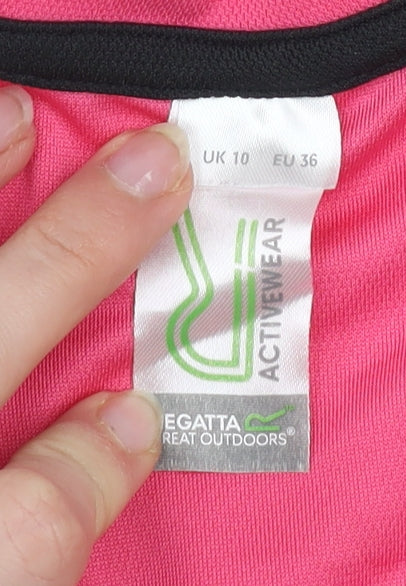 Stay comfortable and confident in your workouts with this Regatta Women’s Activewear T-Shirt. Designed in a vibrant pink with stylish black side panels, this top adds a pop of colour to your active wardrobe. The flattering V-neck and short raglan sleeves allow for ease of movement, making it an ideal choice for gym sessions, jogging, yoga, or hiking. Crafted from 100% polyester, the fabric is lightweight, breathable, and moisture-wicking to help keep you cool and dry as you move. The soft jersey feel ensures all-day comfort, while the figure-enhancing side panels provide a sleek, flattering silhouette.This performance top combines practicality with Regatta’s trusted outdoor quality. It’s machine washable for easy care and quick to dry, making it highly convenient for an active lifestyle. Perfectly suited for spring, summer, and autumn workouts, this versatile piece transitions effortlessly from the gym to casual outdoor activities. The durable stitching and vibrant finish ensure it will remain a staple in your wardrobe for many workouts to come. With only a faint mark visible on the front, it remains in very good condition.Add this reliable, figure-flattering Regatta Activewear T-Shirt to your collection today and experience a blend of comfort, practicality, and energetic style — a must-have for any fitness enthusiast looking for value and performance.