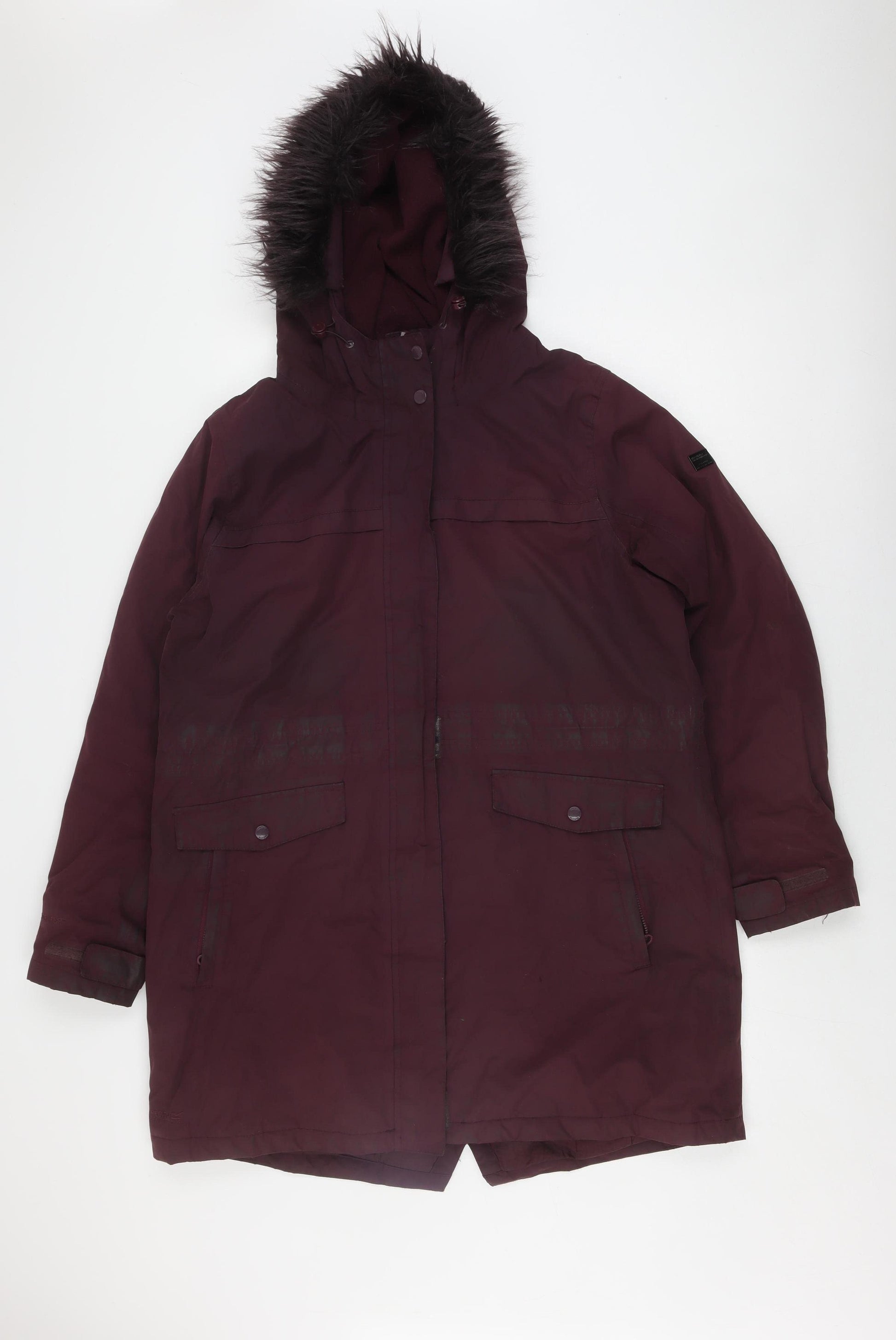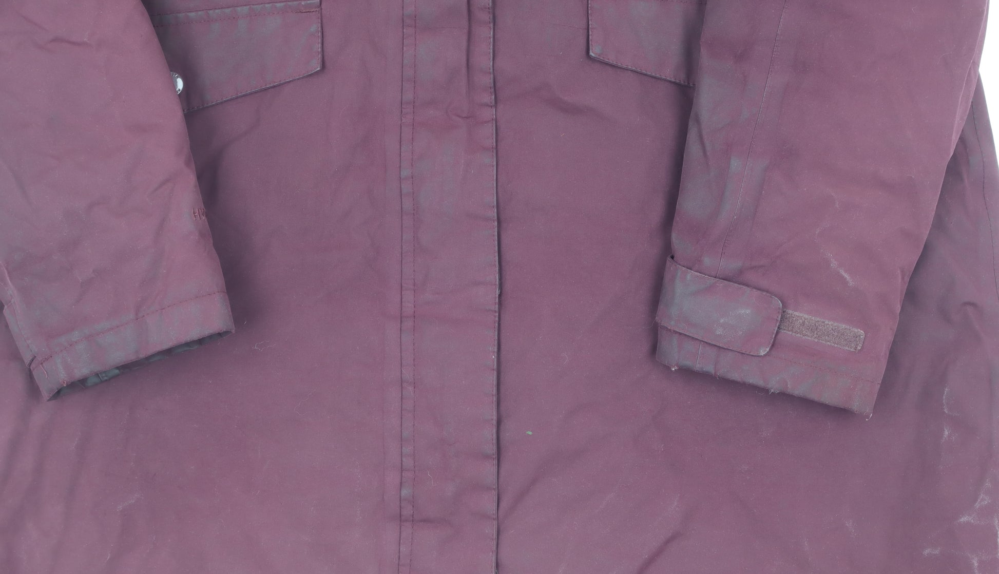 Embrace the cold seasons with this stylish Regatta Women's Parka Coat, designed in a rich purple tone that adds a pop of colour to dreary days. This long coat perfectly combines functionality and fashion, making it your go-to outerwear for autumn and winter. Crafted with a durable blend of polyamide and polyester, this parka is built to withstand the elements while providing optimal comfort. Its fully waterproof features ensure you stay dry, while the insulated polyester lining offers warmth during those chilly winds. The practical hood is a standout feature, providing added protection against the rain, while the multiple pockets offer convenient storage for your essentials. With a regular fit, this coat promises a comfortable wear, whether you're heading out for a casual day or an adventurous walk. The zip and button accents add to the coat's allure, making it as stylish as it is functional. Ideal for casual wear, this coat pairs effortlessly with your favourite winter outfits, ensuring you look chic while keeping warm. This coat is in very good condition with only light wear on the sleeves. Grab this fantastic piece at an unbeatable price!