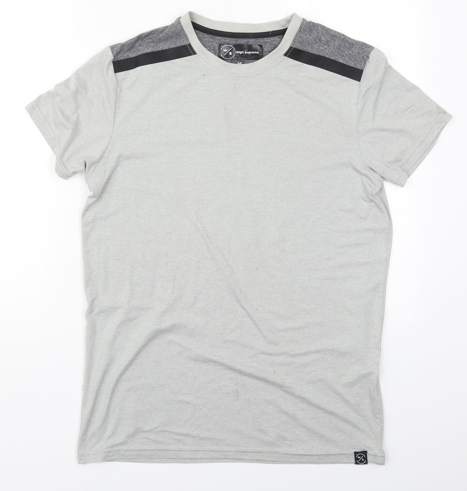 Mens Grey Polyester Basic T-Shirt Size S Crew Neck Pullover