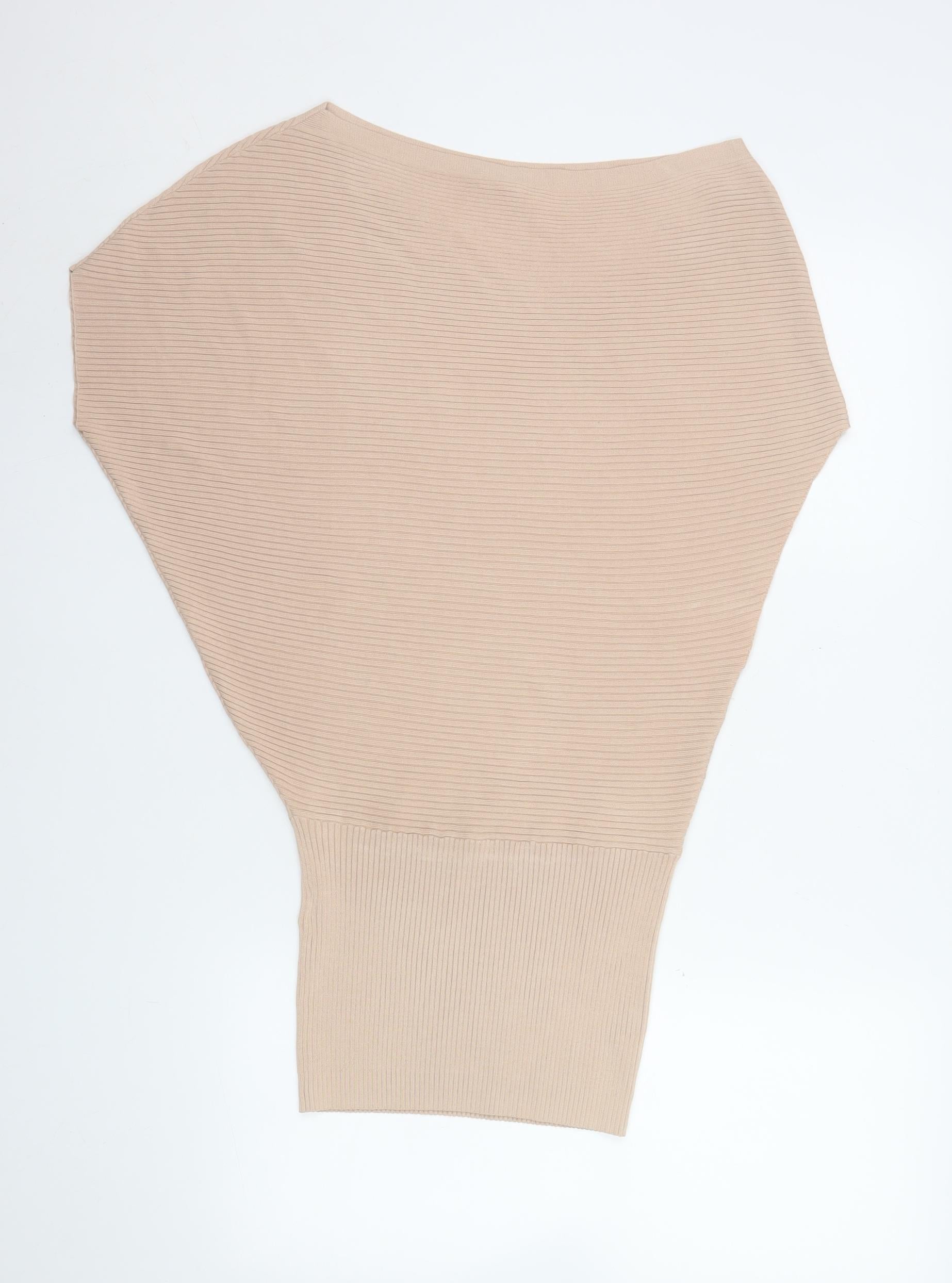 This elegant Reiss Women's Beige Ribbed Batwing Knit Top in size XS is the perfect blend of comfort and sophistication. Crafted from a soft, stretchy knit fabric composed of viscose, nylon, and elastane, it flatters the figure while maintaining breathability and flexibility. The neutral beige tone ensures this piece pairs effortlessly with various outfits, making it an ideal choice for both casual and business-casual occasions. The design features a ribbed texture throughout, adding depth and subtle pattern while maintaining a minimalist aesthetic. Its batwing-style silhouette offers relaxed elegance, flowing from a wider upper section into a fitted waistband that beautifully defines the waist. The neckline sits gracefully, complementing the body shape and keeping the overall look chic and understated. With its lightweight and breathable knit composition, this top is perfect for transitional weather, offering comfort during both cooler spring days and early autumn evenings. Its quality craftsmanship from Reiss embodies the brand’s well-known modern, refined style, delivering timeless appeal suitable for layering with tailored trousers, skirts, or jeans. Ideal for professional settings or social gatherings where understated elegance stands out, this top delivers a contemporary look with day-long comfort. Conditioned in excellent pre-owned state, this piece shows no signs of wear, ensuring lasting quality and continued sophistication at exceptional value. A true wardrobe staple that enhances effortless everyday style.