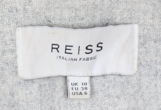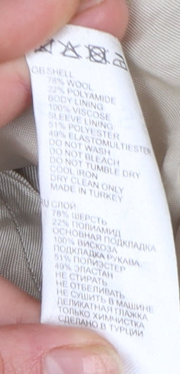 Exude timeless sophistication with this Reiss women's overcoat, expertly tailored in a soft beige Italian wool blend. Crafted from 78% wool and 22% polyamide, the fabric offers a fine tweed-like texture that combines warmth, structure, and an elegant drape, perfect for the colder seasons of autumn and winter. Designed in a flattering long silhouette with a classic collared neckline and a two-button single-breasted front, this piece evokes an effortlessly polished aesthetic suitable for both business and casual wear. Fully lined with a smooth viscose and polyester blend for comfort, this coat ensures a refined fit and ease of movement across your daily activities.The neutral beige tone makes this coat remarkably versatile, pairing seamlessly with both office tailoring and weekend ensembles. Twin front slit pockets add practicality without detracting from its minimalist silhouette, while neatly tailored seams enhance the elegant fit. Subtle button accents elevate its streamlined appeal. Although gently used and showing light marks and minimal wear, it remains in good condition and retains its luxurious allure. Elegantly constructed from premium Italian fabric, this piece reflects Reiss’s reputation for high-quality craftsmanship and understated style.Ideal for layering over fine knitwear or crisp shirts, this long overcoat provides both warmth and sophistication during transitional weather. Whether paired with smart trousers, denim, or dresses, it completes any outfit with grace. Perfect for modern women seeking a refined outerwear option that balances classic tailoring with comfort and wearability.This Reiss long coat is a wardrobe investment that merges timeless appeal with functionality – a must-have for discerning wardrobes that appreciate luxury materials and sleek tailoring.