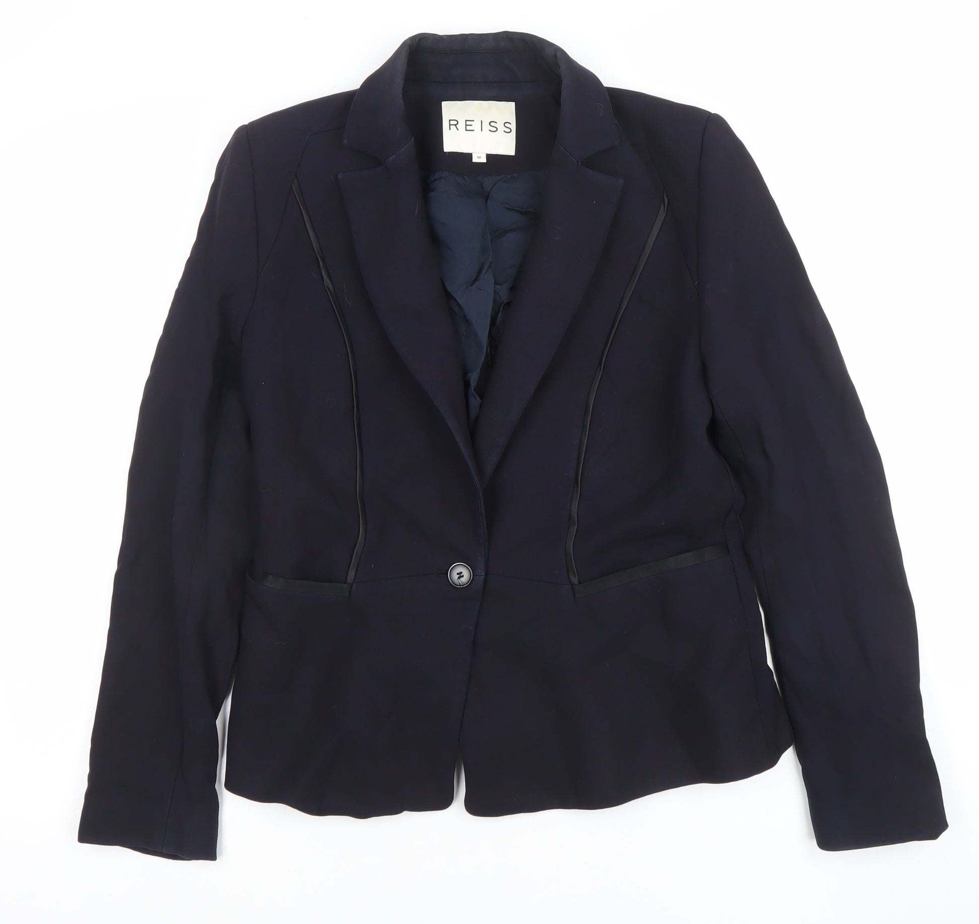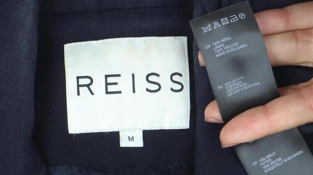This elegant Reiss women’s blazer in deep blue is a timeless wardrobe piece, ideal for business, formal, or workwear occasions. Expertly tailored from 100% wool, this single-breasted blazer delivers a refined, professional look while maintaining comfort and structure. The fully lined interior, crafted in soft viscose, adds a smooth finish and ensures the blazer drapes beautifully. Its slim fit design highlights the waist, creating a flattering silhouette with classic notch lapels and a single front button closure. The jacket features long sleeves and a regular length cut, making it versatile enough to wear both with matching trousers for a complete suit ensemble or with jeans for a stylish smart-casual look. The woven texture and subtle sheen of the wool fabric underscore the superior quality typical of Reiss tailoring. This piece embodies understated sophistication and is perfect for seasons like autumn, spring, and winter when layering is essential. While the lining shows minor tearing and there are some light signs of wear, the overall structure remains solid and wearable. This makes it an affordable option for professionals seeking designer quality at a reduced price. Pair it with a crisp blouse, tailored trousers, or a skirt to achieve a polished and confident outfit. The Reiss women’s wool blazer offers timeless appeal for modern wardrobes, marrying high-end craftsmanship with elegant style for an enduring investment piece.
