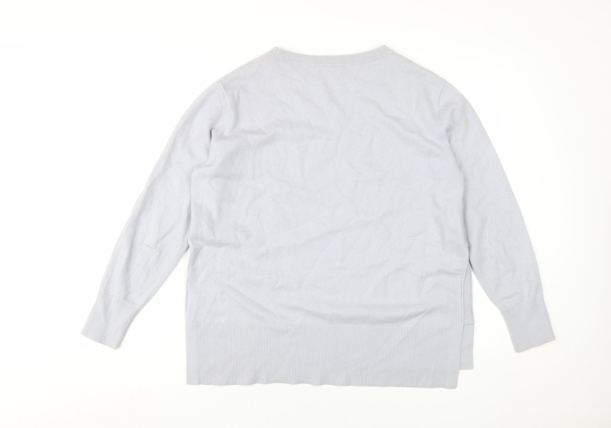 Women's Grey Crew Neck Wool Cashmere Pullover Jumper Large