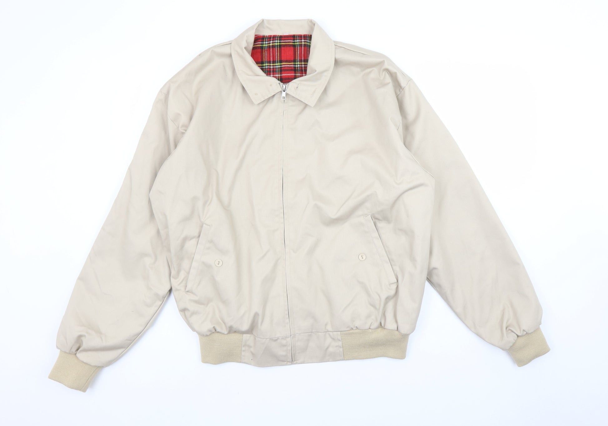 Men's Beige L Bomber Jacket Classic Tartan Lined
